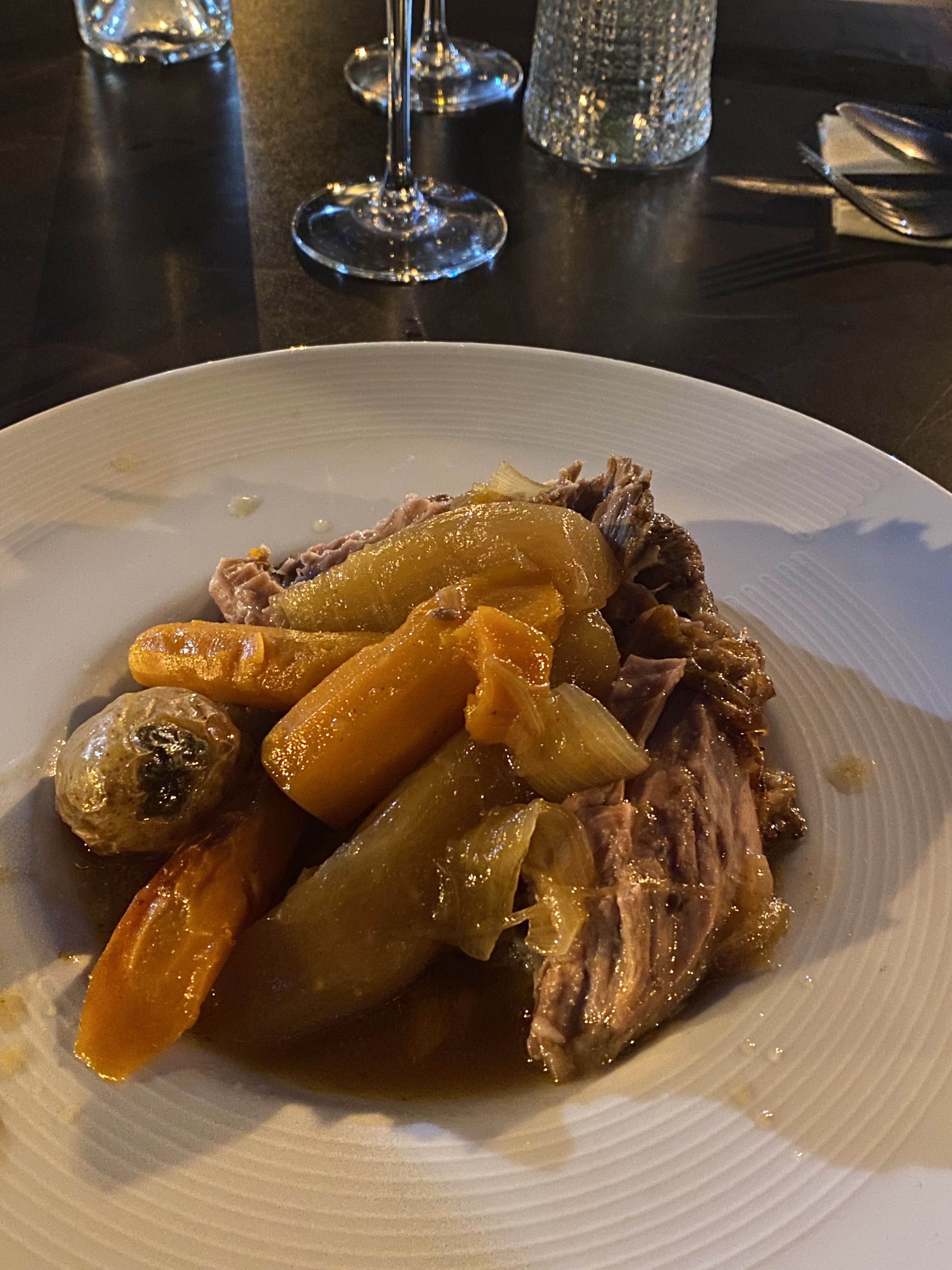 Pleasant meal in a lovely setting. I had the faux-filet cooked medium, which was fairly tough and gristly, but tasted amazing with the salt. I ordered a mushroom sauce, but it really wasn’t needed and I felt tasted strangely sharp.