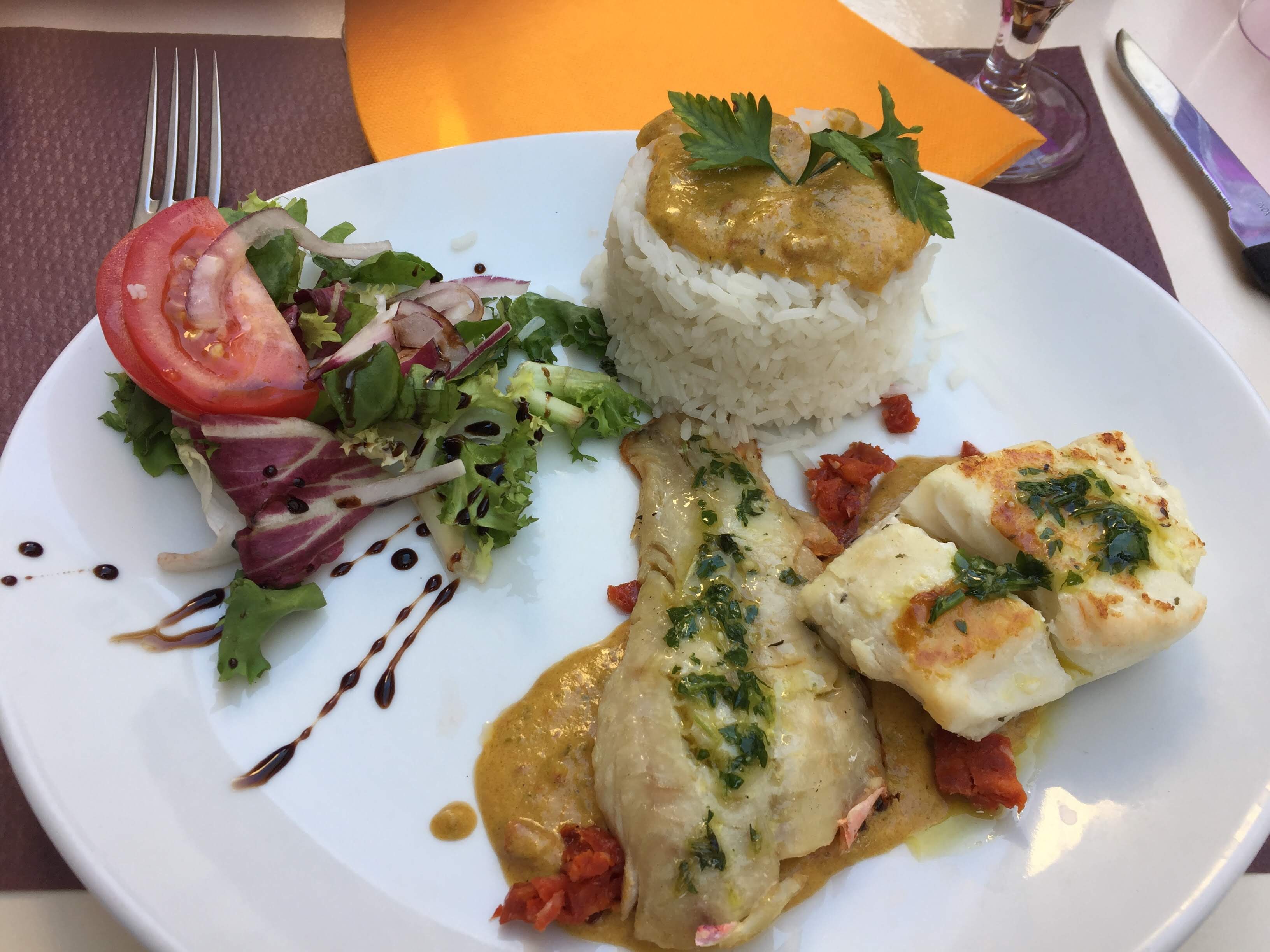 Perched on the rooftop of a hotel, this place delivers a stunning view of Ajaccio, the bay and the surrounding mountains. Thanks to modular wall sections, panels can be opened and closed at will, depending on the weather. In the open kitchen, chef Franck Radiu can be seen working hard to a soundtrack of electronic music. A local man, and a pastry chef by training, he serves up a well-paced meal that makes the most of the riches of Corsica's terroir. On this occasion: a spider crab cannelloni, with a twist in the form of grapefruit supremes; sea bream on potato patties topped with a delicious bouillabaisse jus, and a trompe-l'œil lemon in a delicate white chocolate shell – a light, citrus dessert.