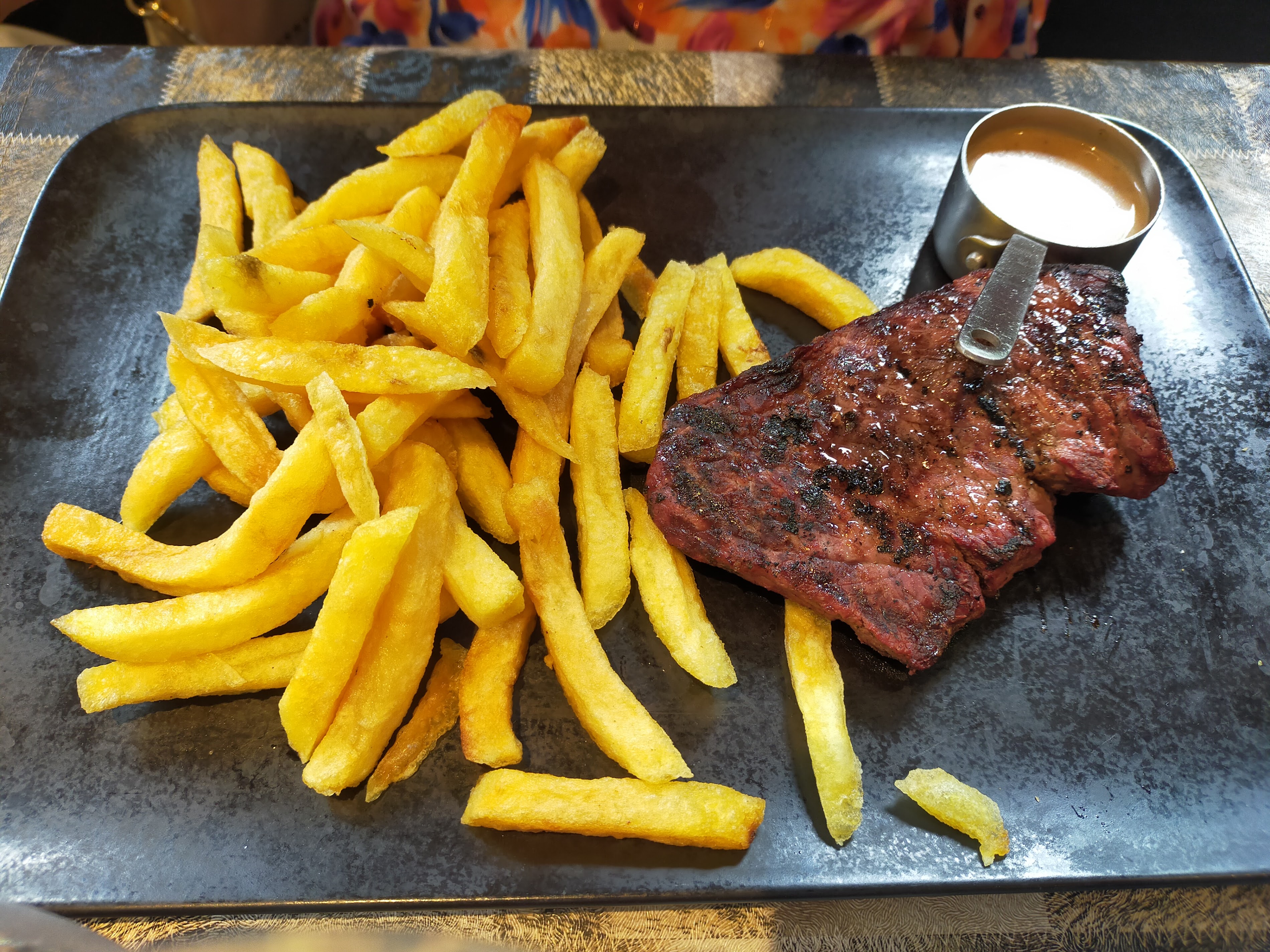 Good wine, very kind and helpful staff (the guy at least, for the others I can't tell). The food was OK, but not better than that. The plate was too simple. No salad with the meat and fries. No mayonnaise, who eats fries without sause? I mean, I'm Belgian... Room looks very clean and is well decorated. Chairs are back-ache proof. That last comment is personal, but for me it was ok to sit for an hour. I would recommend as a safe place to eat, no surprises and you'll feel welcome.