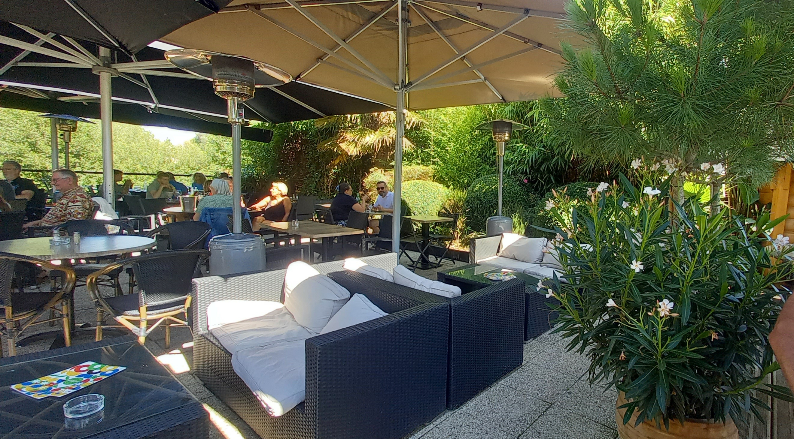 Bi lingual staff. Cute setting. Meal for 2 mains, 2 wines, 1 mocktail and 1 dessert €70. Recommend the beef tartare dishes.