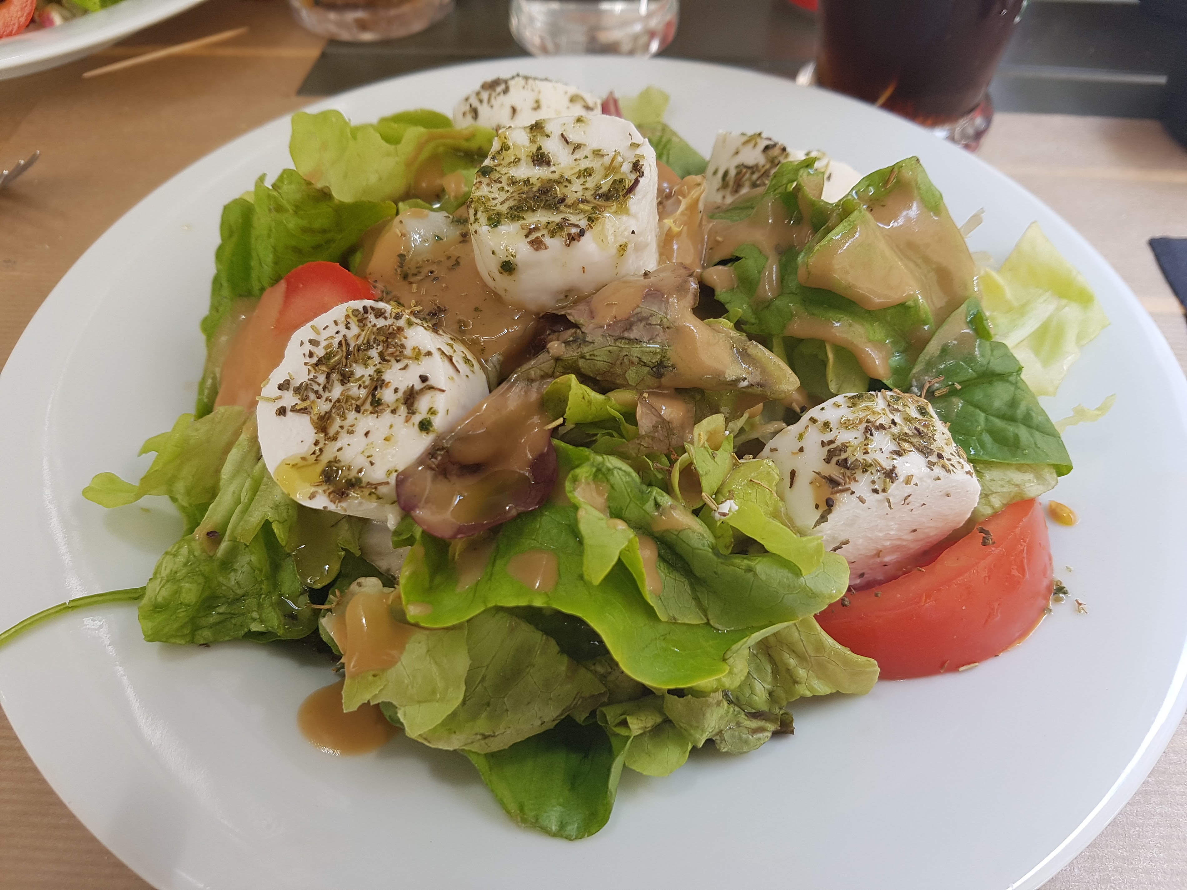 We sat outside in the sunshine and enjoyed two very large and tasty salads.