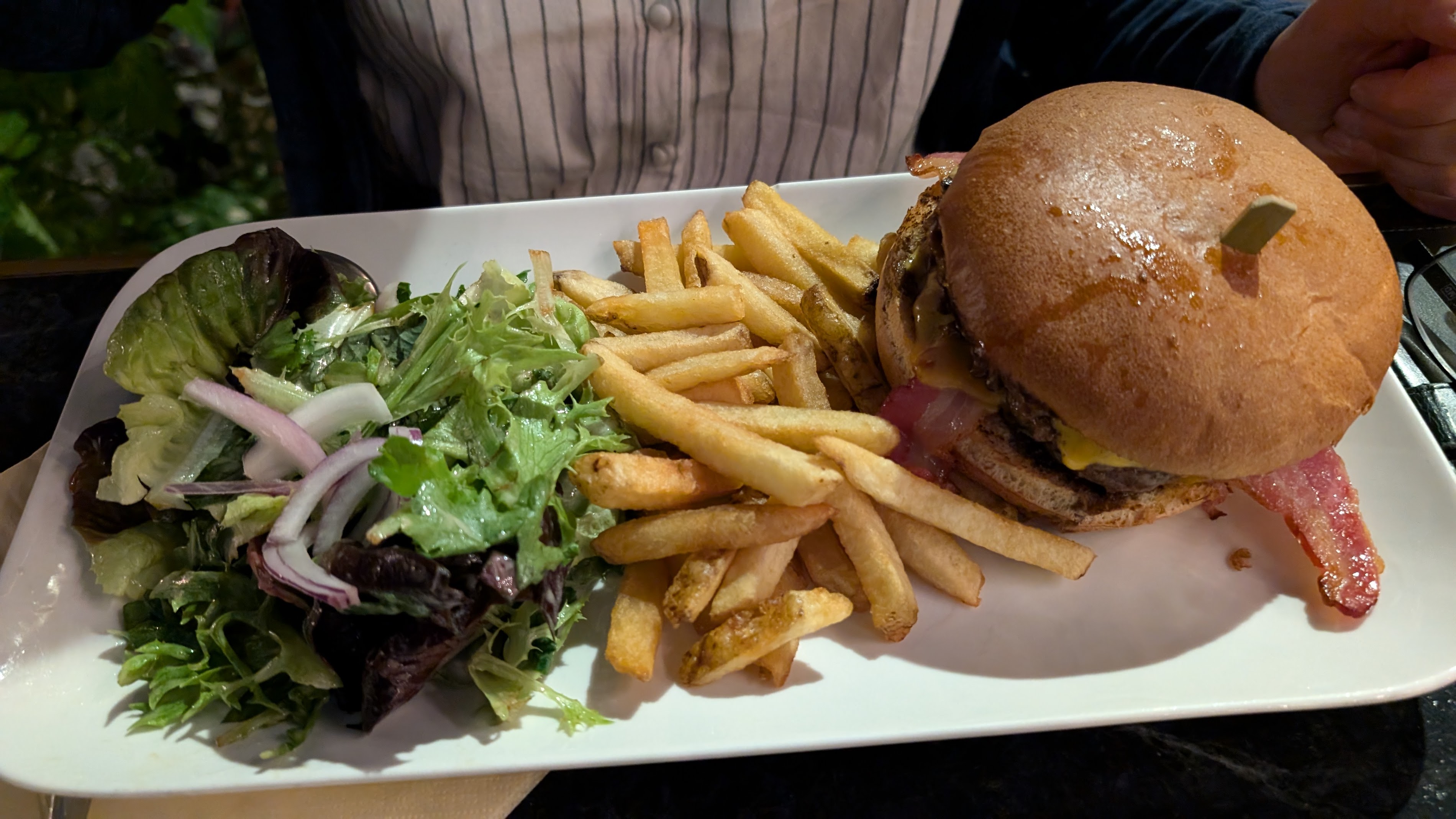 We (party of 4) arrived for lunch- what a great experience! My fillet of San Pierre (John Dory) was perfectly done- others had the lamb en croute. Desserts were fabulous- a giant Profiterole and a type of apple tart. A nice wine list. We were the last to finish eating but never rushed. A beautiful lunch in a nice setting, attentive service - great memories!