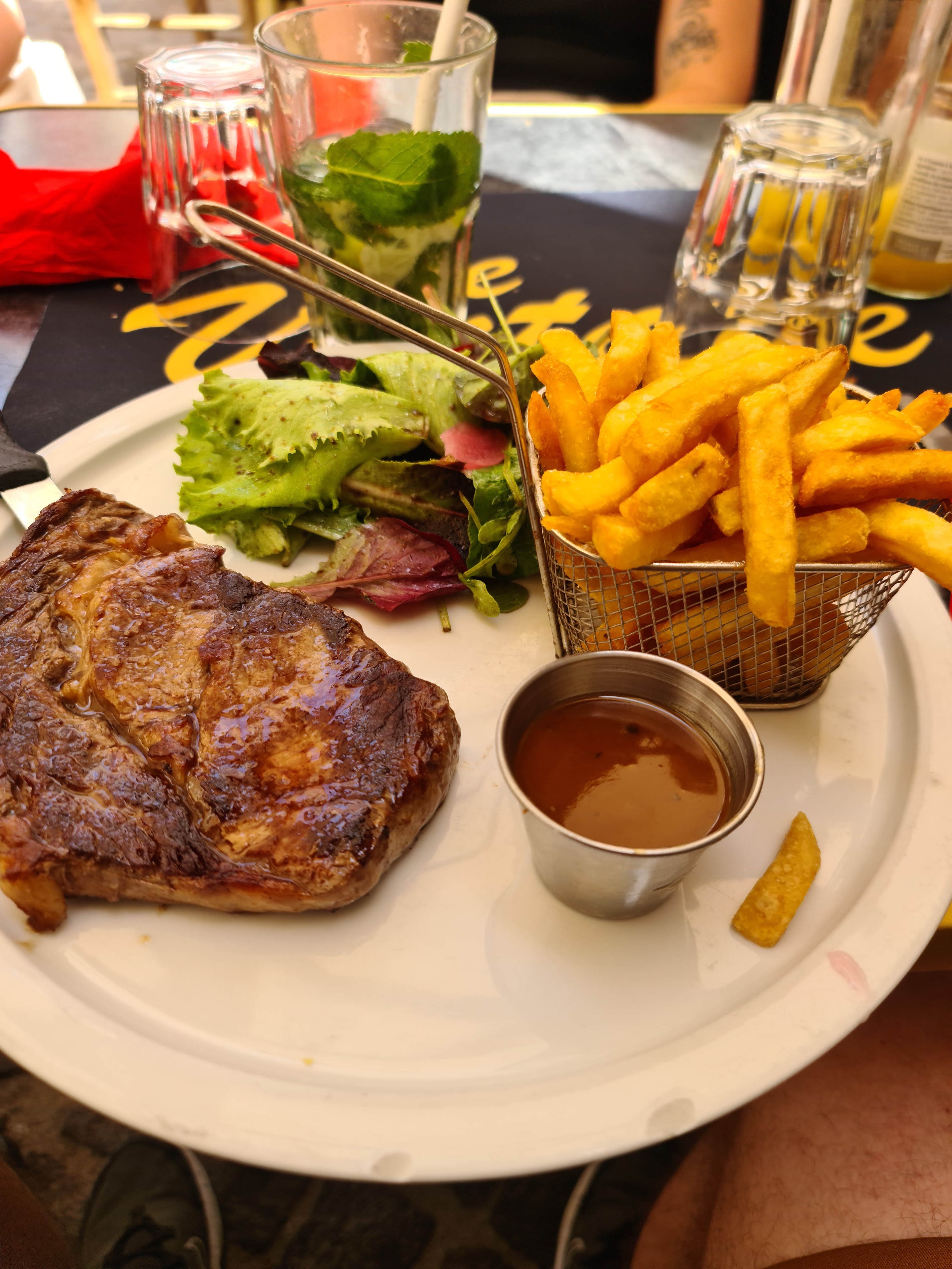 Le Vintage was a really good restaurant. It was relaxed, yet the food was excellent. I had a delicious goat's cheese starter and some sort of lamb dish. It was a bit like shepherd's pie, but in a much more French and sophisticated way. The service was very friendly and tolerant of our - sadly - woeful French. The prices seemed reasonable and it was a great dining experience. We went early (with children), so the restaurant wasn't very full. Even so, it was a lively atmosphere, with French music playing. I can imagine if you arrive later it would be very vibrant. Great, authentic food.