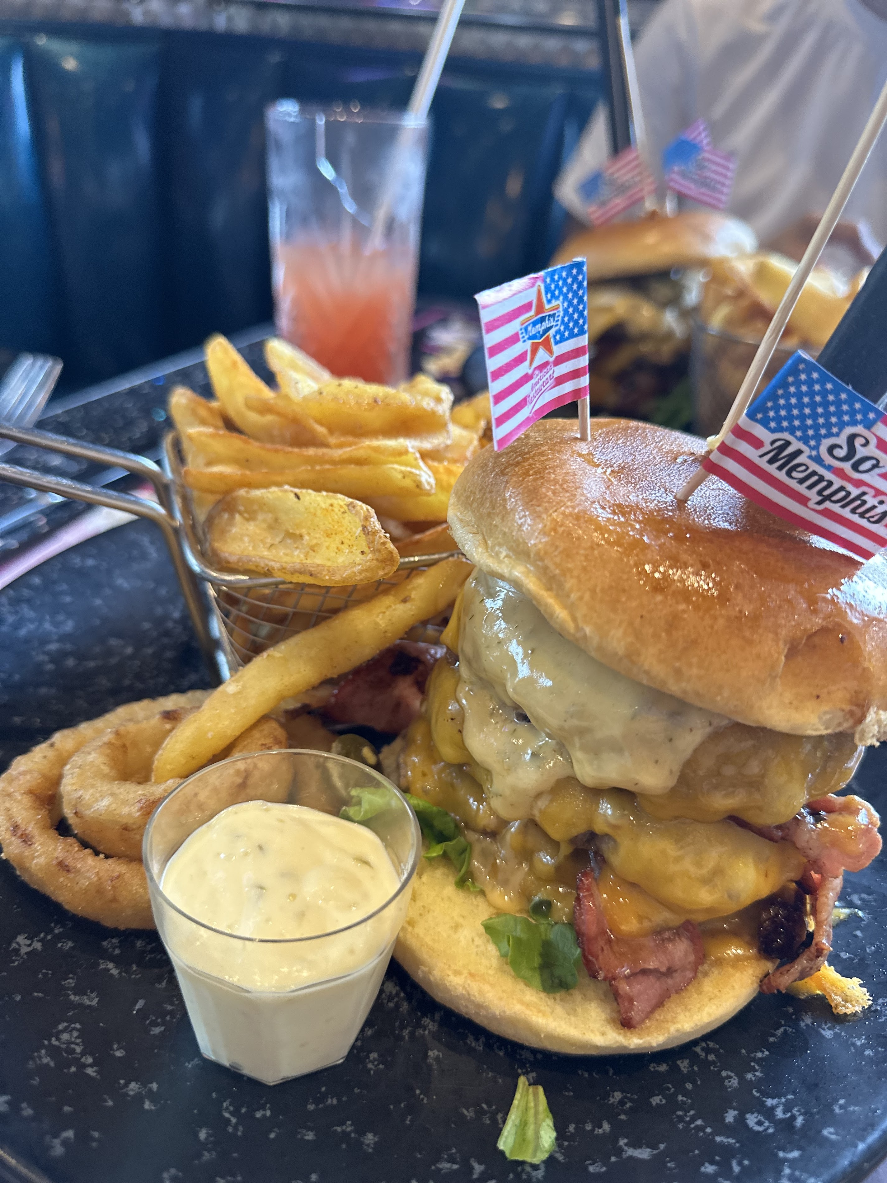 We Called in to the Memphis-Restaurant Diner on 23/06/24 . I’d like to say a big thank you to our server today , as i am a non French speaking tourist , she helped us through the menu which I thought was great . The inside of Memphis - Restaurant Diner is spotlessly clean everywhere. You can clearly see that the staff are well trained in hygiene. Plenty of parking available , theres even a disabled space right next to the front door . The reason I’ve marked it down is because they were having staffing issues in the kitchen so it was a limited Menu . It was pretty much burgers that was okay to order . And atmosphere was not there because there was only two families eating . I’m sure it’s a different take when it’s at its busiest. The food we had was superb, we will definitely be back to Memphis -Restaurant Diner. So if you’re in the area it’s well worth a visit .