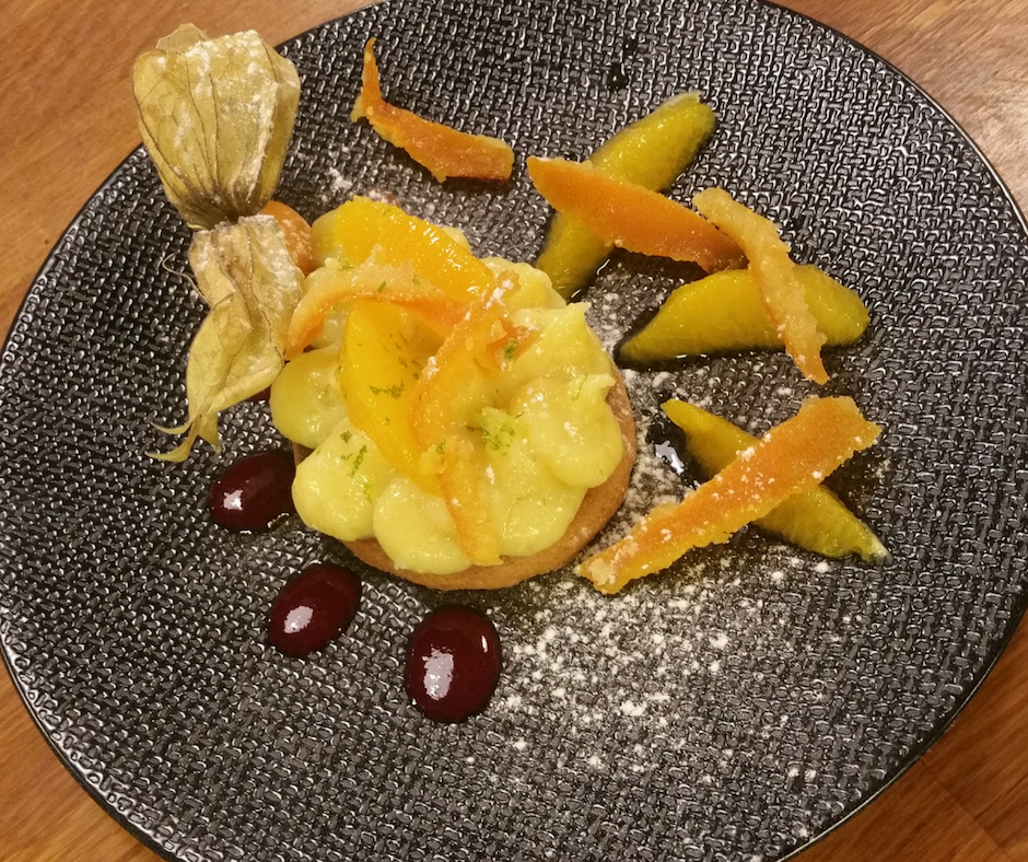 This restaurant was a hidden gem. The course that impressed me the most was the starters, with the tomato panna cotta and the peach tart. I could taste the freshness and sweetness in the peach tart. For dessert, I had the tiramisu and the ice nougat. They were both exceptional, but I liked the nougat more.