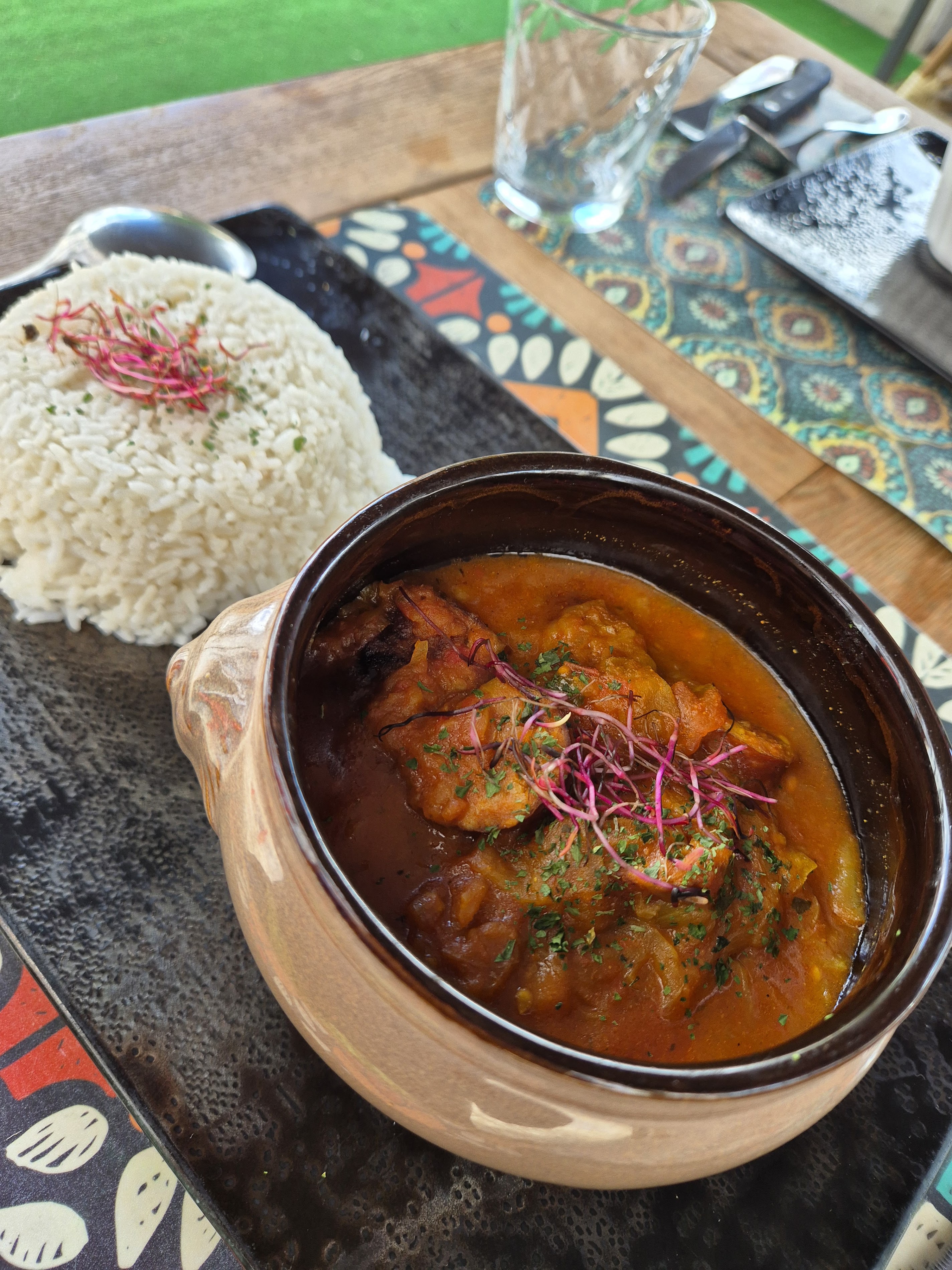 Fantastic food, kind and welcoming staff, and dynamic ambience with live music and cool, happy people. Highly recommend the mafe and rice of Mali origin. Very tender. Not too spicy, just perfect.