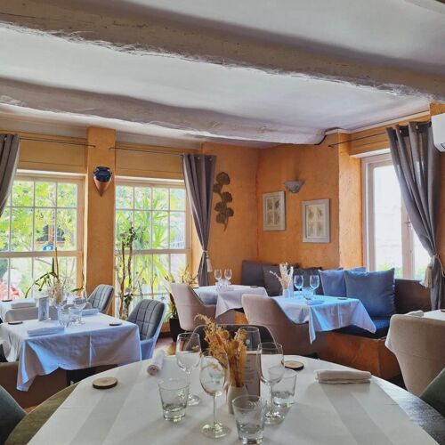 In a charming little street in the medieval village, this pretty restaurant with a distinctly Southern French feel serves fresh, colourful bistro cuisine that embraces the seasons.