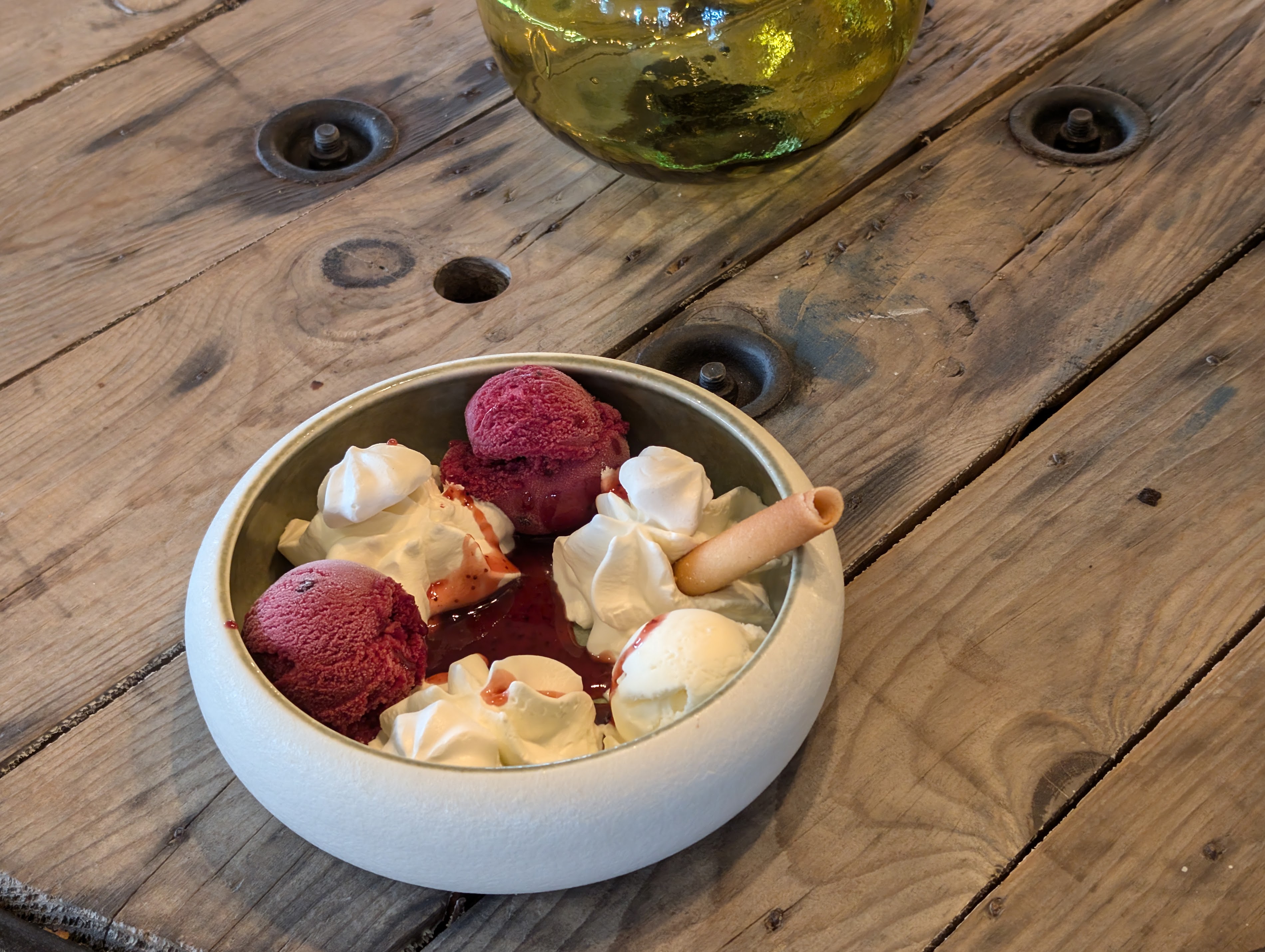 I was one of the first people to arrive at the restaurant that evening, and although by the time I left, they had massive amounts of people there to eat, they obviously didn't have enough servers to look after everyone. I ordered the classic French Onion Soup, and it was so without taste, I was obliged to ask for salt to have any sort of sensation that I was eating anything other than dirty dishwater. The colour of the soup rather than a rich golden was pale and greasy. The salt to nearly ten minutes to arrive. Then I had the warmed goats cheese salad. After waiting an hour for it to arrive, I was shocked. After more than a decade of living in France, I have eaten this dish in many places. It is one of my favourites, and this was the meanest portions I have ever seen. They could not have cut that cheese any thinner. It's obvious the chef here has either lost his passion for food or is so constrained by budget worries that he should be searching to work elsewhere. However, on a more positive note, they will accept dogs, the chairs were reasonably comfortable, and the staff, whilst inattentive and slow, were reasonably friendly and polite. I decided it was too late for desert as I didn't wish to sit for another hour waiting for another disappointing dish. I suspect they were aware of how bad my meal was, as after I queued up to pay, they didn't ask me if I had enjoyed my meal, they simply told me the price of it.