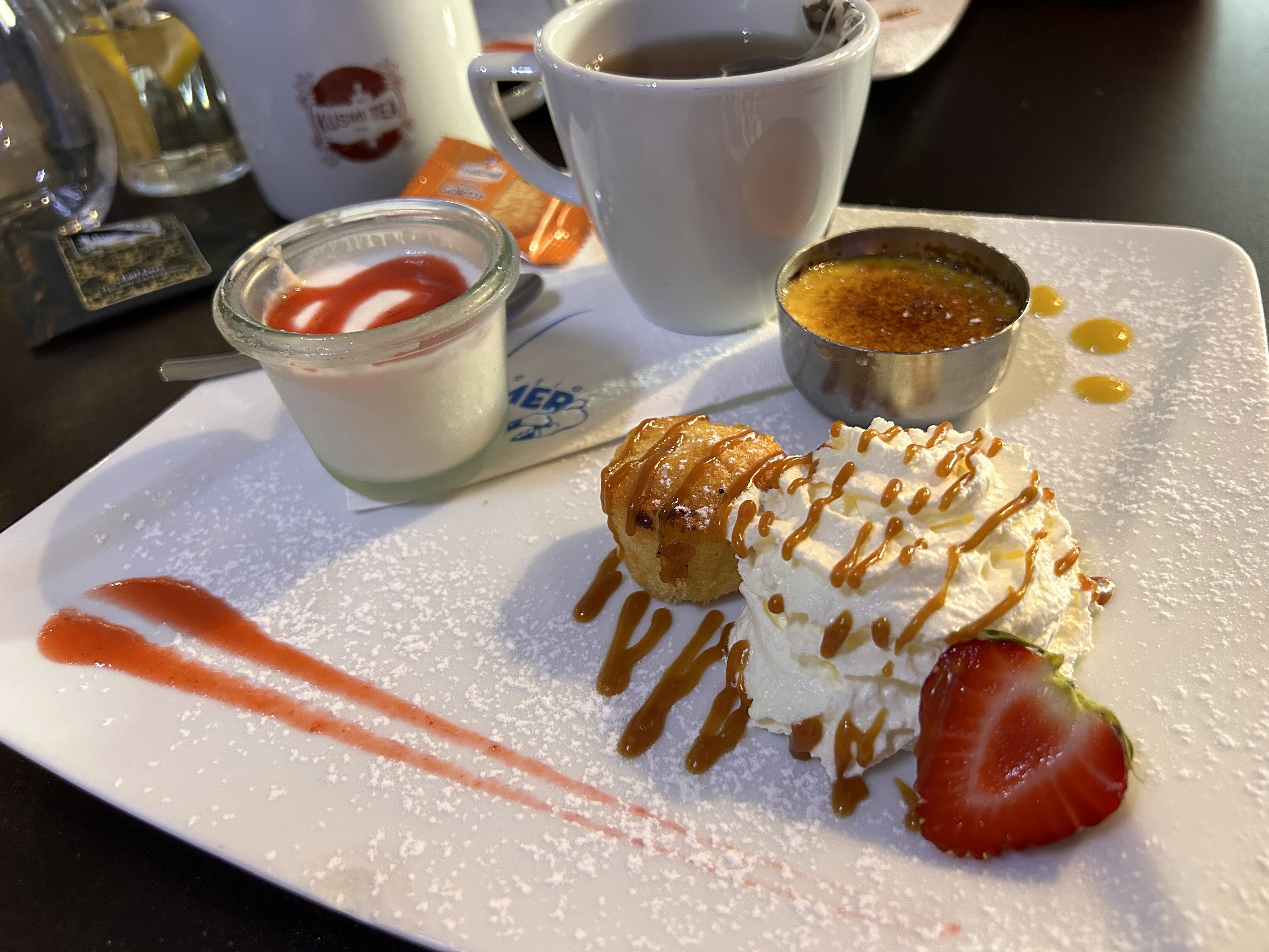 The overall experience was good. We came for the sea food and Brasserie de la Mer offered a good variety from starters to mains. We ordered 3 Amiral menus with selections of seafood bouillon, salmon terrine and salmon tartare with avocado. All are lovely in tastes and beautifully presented. The bouillon has a touch of Asia with flavorful curry. For the mains, we had grilled seabass, salmon in Thai sauce strongly flavored with fish sauce and too salty for my taste, and juicy flank steak. Desserts are on the sweet side. Kid's meal could do better with additional portion of vegetables and should include a drink at the charged price.