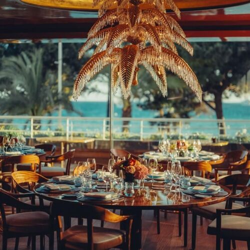 The restaurant of the emblematic Hôtel Martinez, luxurious realm of the stars during the Cannes Film Festival, is a vibrant tribute to cinema, one of chef Jean Imbert's passions. With wood panelling that wouldn't be out of place on a yacht in the golden age of Hollywood, the decor is overflowing with authentic film props and posters. The menu is written like a screenplay, illustrated with storyboards. Under the guidance of Imbert, chef Christophe Nannoni, a mainstay of the place for over a decade, works closely with pastry chef Loïc Voron (Cheval Blanc St-Barth). The sea and Provence are the two stars of the show here – they provide ingredients that feature in dishes that never fail to pique the interest: wild gamberoni from the Gulf of Genoa, mango and kumquat sauce vierge; barbecued and glazed John Dory, rocket pesto, shellfish cooked in a sealed casserole pot and local vegetables; vanilla palmier made to order. Lights, camera, action!