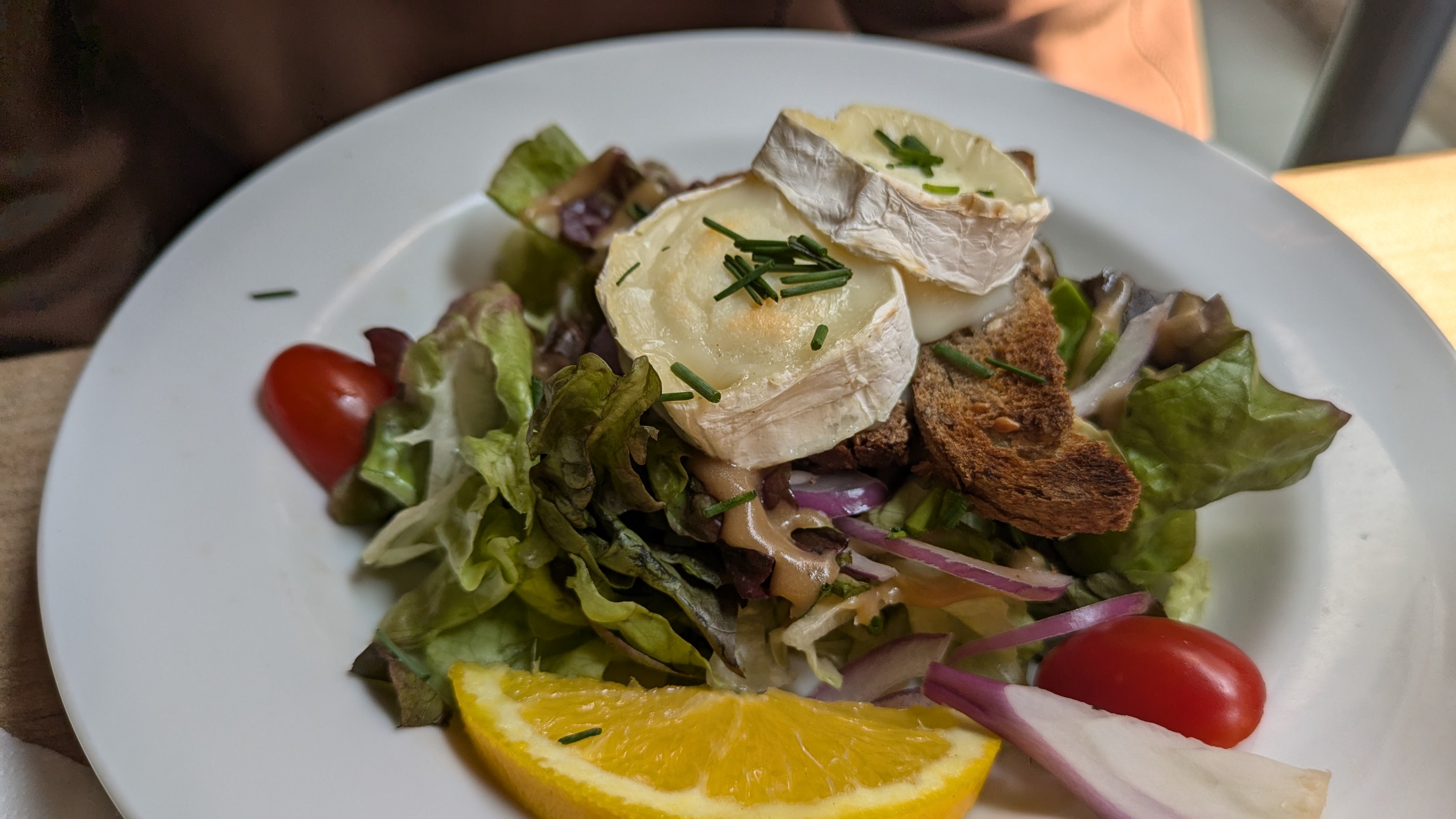 It was cold, it was raining, there were few to be seen. In the patio, it was cold too. My wife and I ordered the menu at 16 euro. Service was good. Price was correct and the cassolette acceptable. Soupe d'oignon just okay. Salad chèvre chaud was good. So in the end, nothing spectacular. But correct for the price