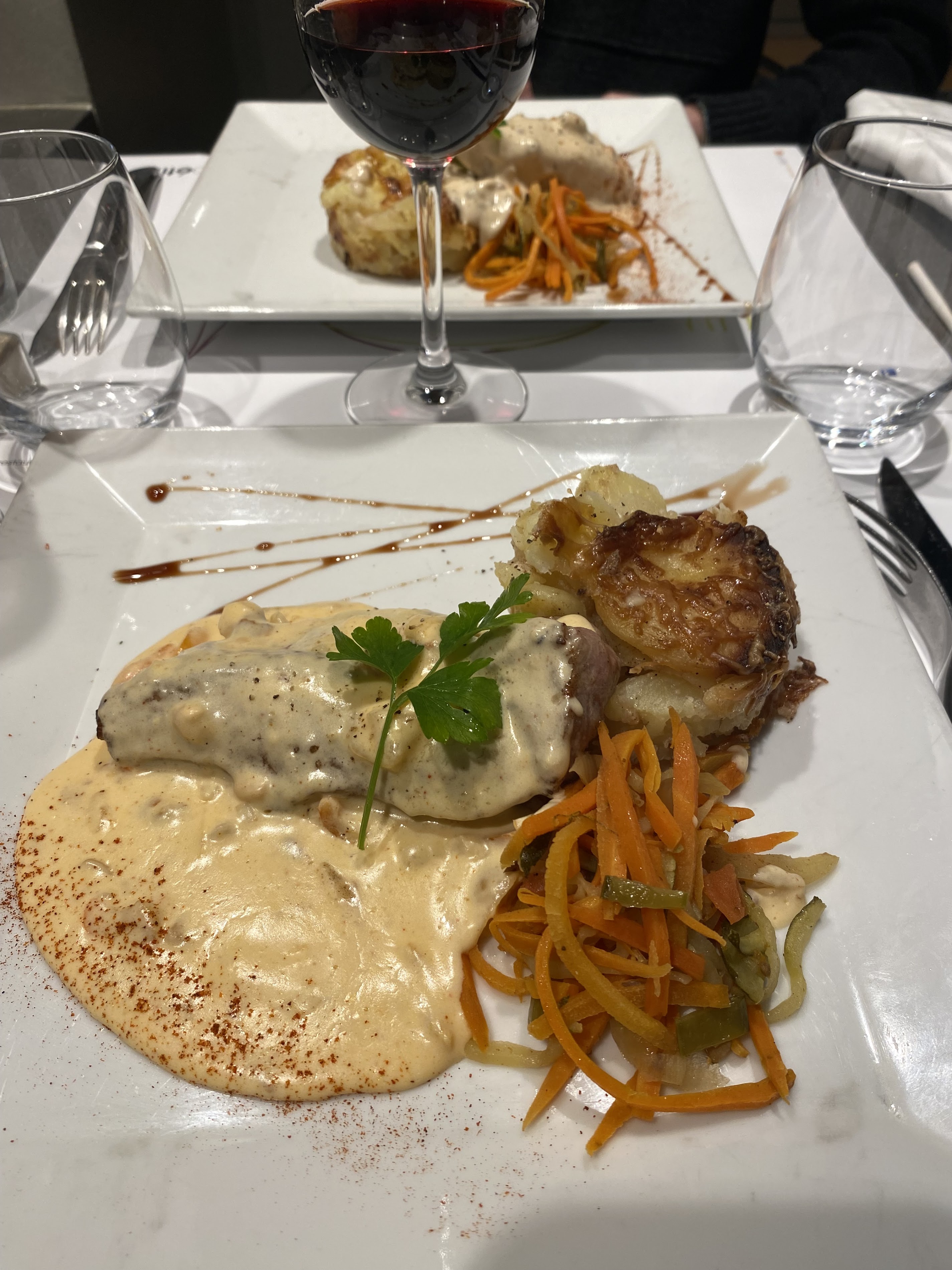 This place was so good, I didn't even take photos... Very professional staff, real restaurant feeling, even though the decor is a bit quaint and modern, but rather uplifting. The food is quite traditional, refined. Scallops were probably the best we ever had. A very positive overall experience, an evening that makes you feel good about yourself ?