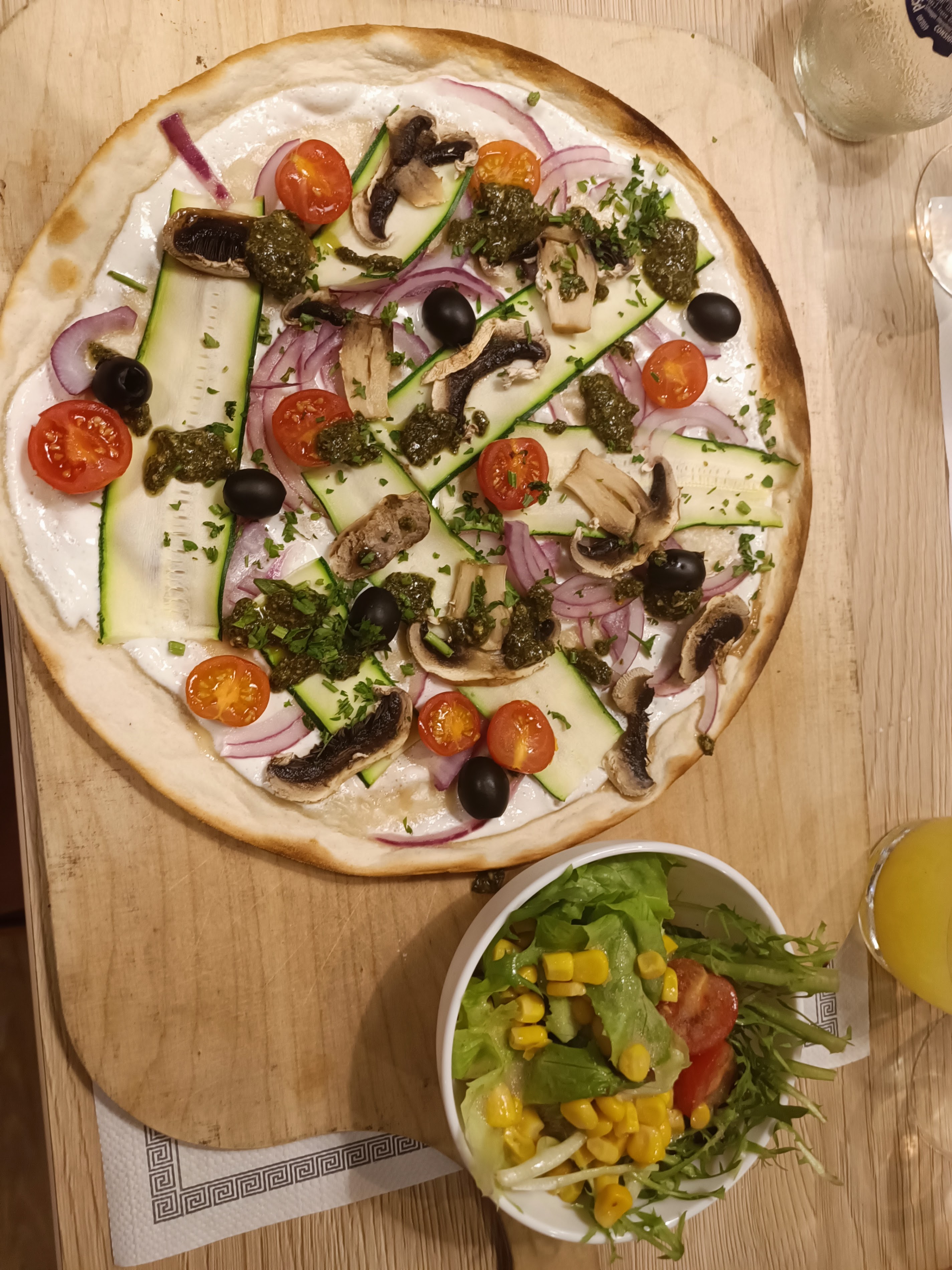 At 10:35 p.m. they brought me my pie which unfortunately was not cooked. Whether it's the dough, the bacon, the onions, we can see very clearly the lack of cooking...but in a hurry for it to finish, I'm not saying anything...