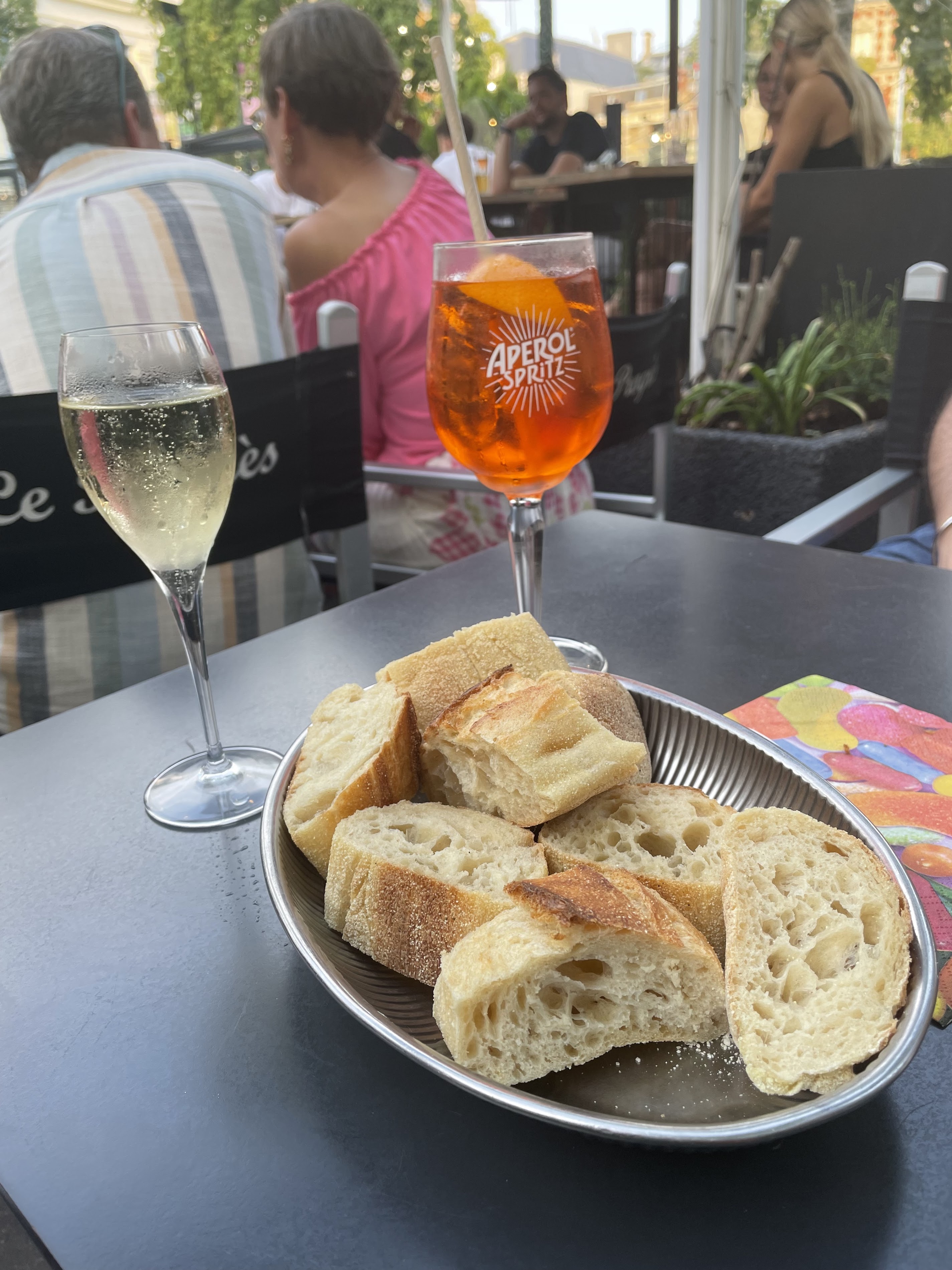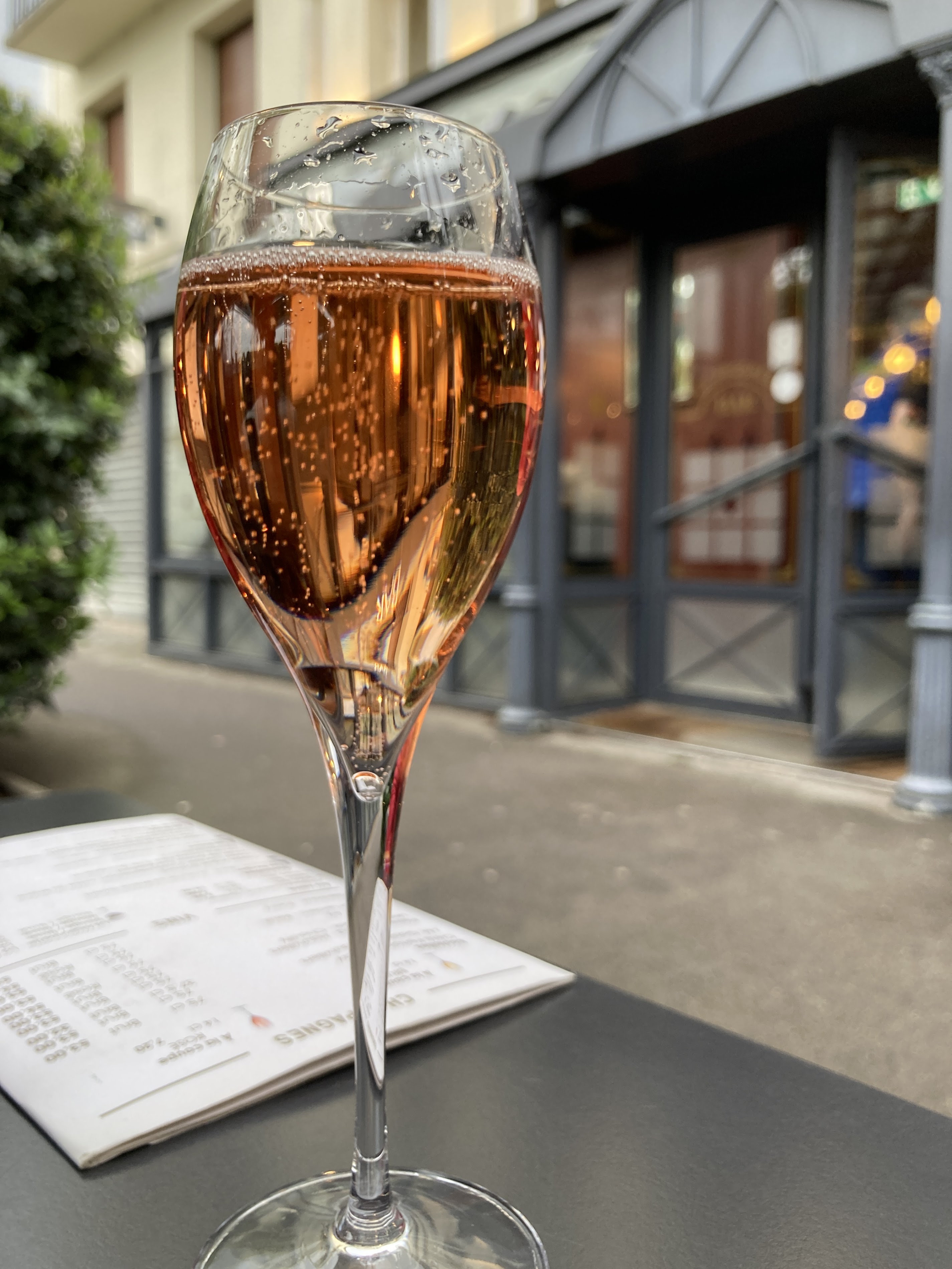 Great stop for dinner after champagne tasting. Out server was quick and delightful. Food was good! We each order champagne by the glass and enjoyed it very much! They even changed the TV channel inside so we could watch the Olympics :)