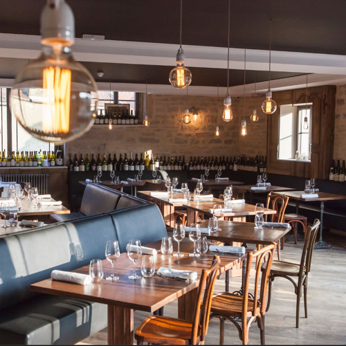 Bare stone walls, bench seating and a superb wooden counter set the scene in this bistro, which is housed in its parent hotel. Expertly crafted burgundy recipes take pride of place on the nostalgic menu: home-cured ham, poached egg in wine, Bresse poultry, profiteroles... Fantastic wine list!