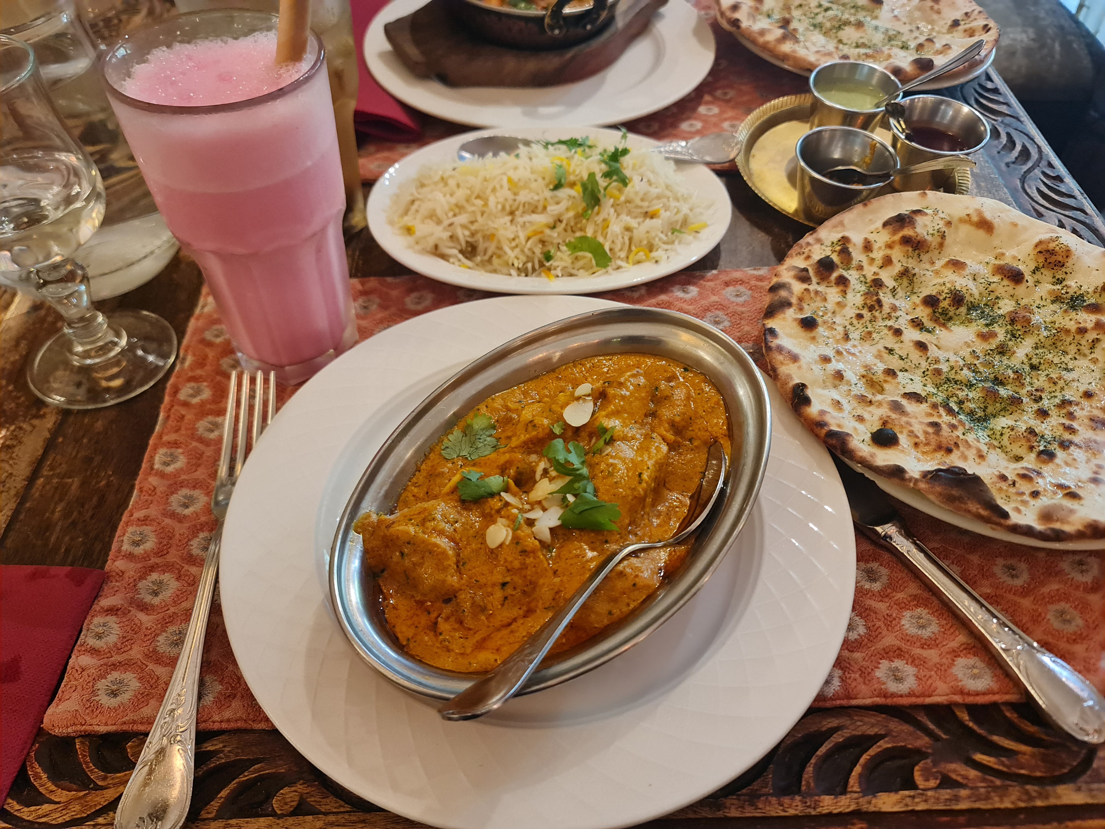 The only big downside is that the tables are small and packed. 4 people at a table of 4 ordering one main dish and one drink each, rice and a few naans and the table was 100% full, and I mean 0 room for a phone or an elbow.