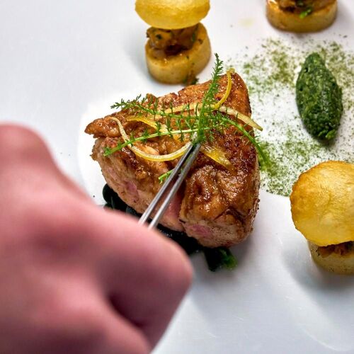 This restaurant in a spruce building typical of Brittany is run by a young couple who have built up a loyal clientele with their modern cuisine and meticulous service. The chef keeps an eye on the seasons, thanks to a trusted network of small-scale producers. He skilfully enhances the top-notch ingredients they supply, often teasing out smoky notes and adding just the right dose of bitterness and acidity: poached langoustines, cabbage with lime; apple, crepe stuffed with apple vanilla compote, fromage blanc sorbet and combawa diplomate.