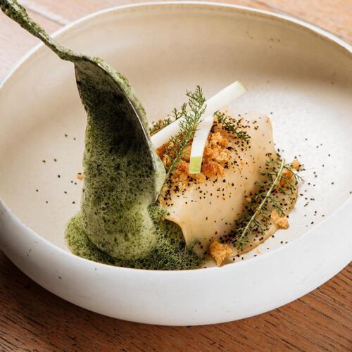 In his restaurant overlooking the Bassin du Roi, chef Gauthier Teissere is assisted by Marguerite (his wife) front of house. He delivers contemporary, creative cuisine, jazzed up with the occasional nod to Asia. The stylish, snug interior is the perfect foil for dishes that reverently respect the seasons. Each dish is a masterpiece – not least the tender pork belly with a celeriac purée and smoked emulsion, or the generous pollack with cauliflower and capers.