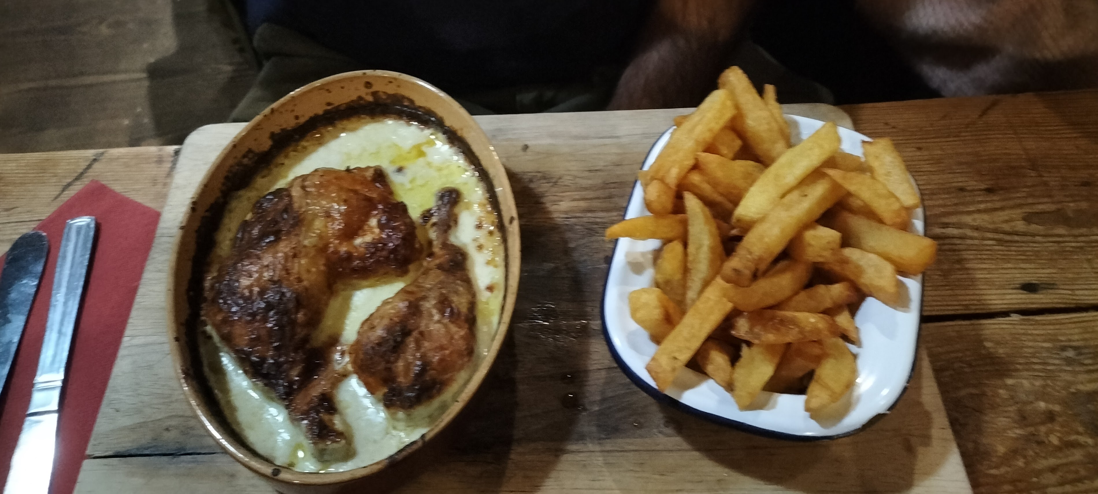 Great authentic food and great staff considering we don't speak much French! I had the poulet au maroilles (pictured) and my partner had a cheese board, both were delicious. We had a large beer each as well and the bill came to just over €40