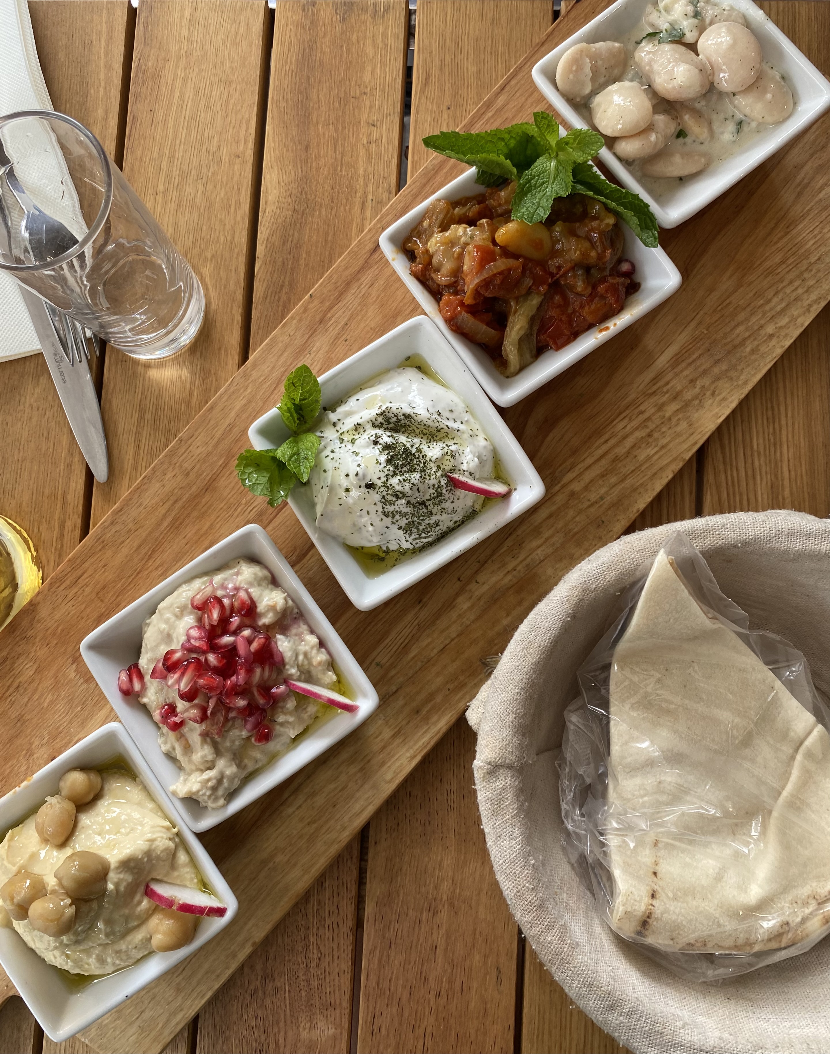 We stopped in for lunch. I had the 5 meza plate and my friend had a moine salad, smokey eggplant, delicious. We sat upstairs, nice atmosphere.