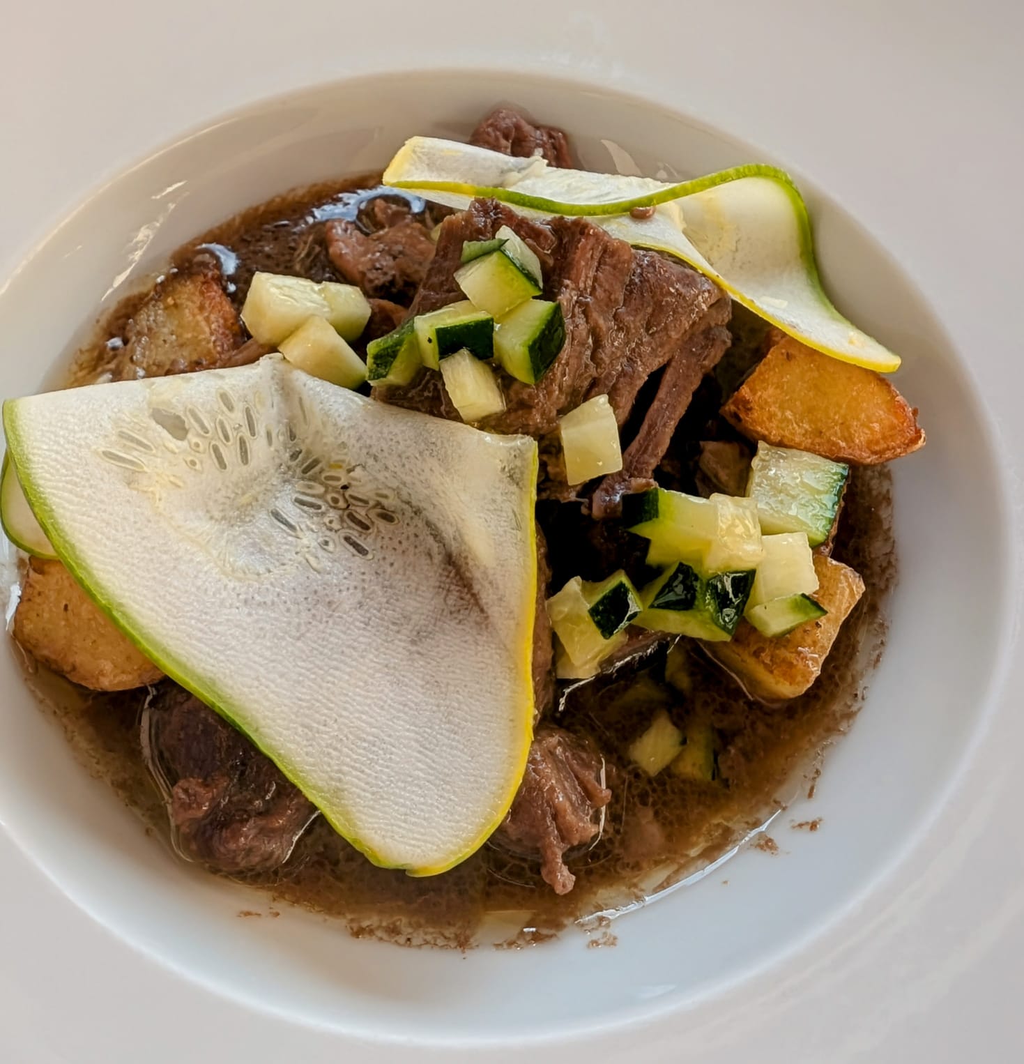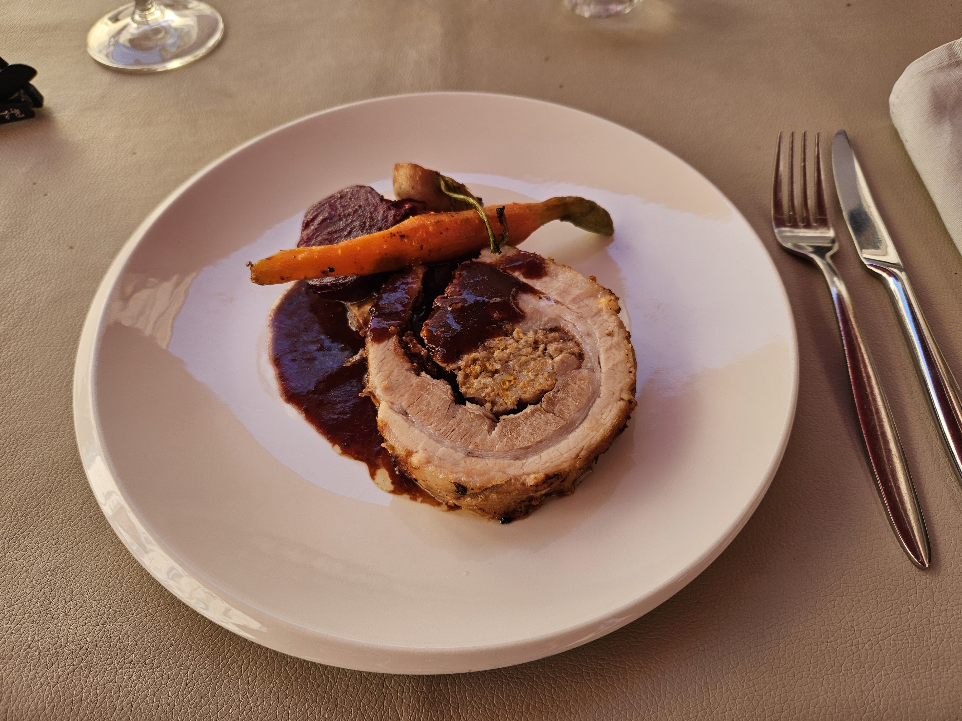 We ordered the homemade seafood pasta, beef charlois, veal, apricot sable and olive oil cake. The veal and vegetables were delicious. I personally found the pasta and desserts a bit dry and the nice beef overpowered by its condiments. My partner did not.