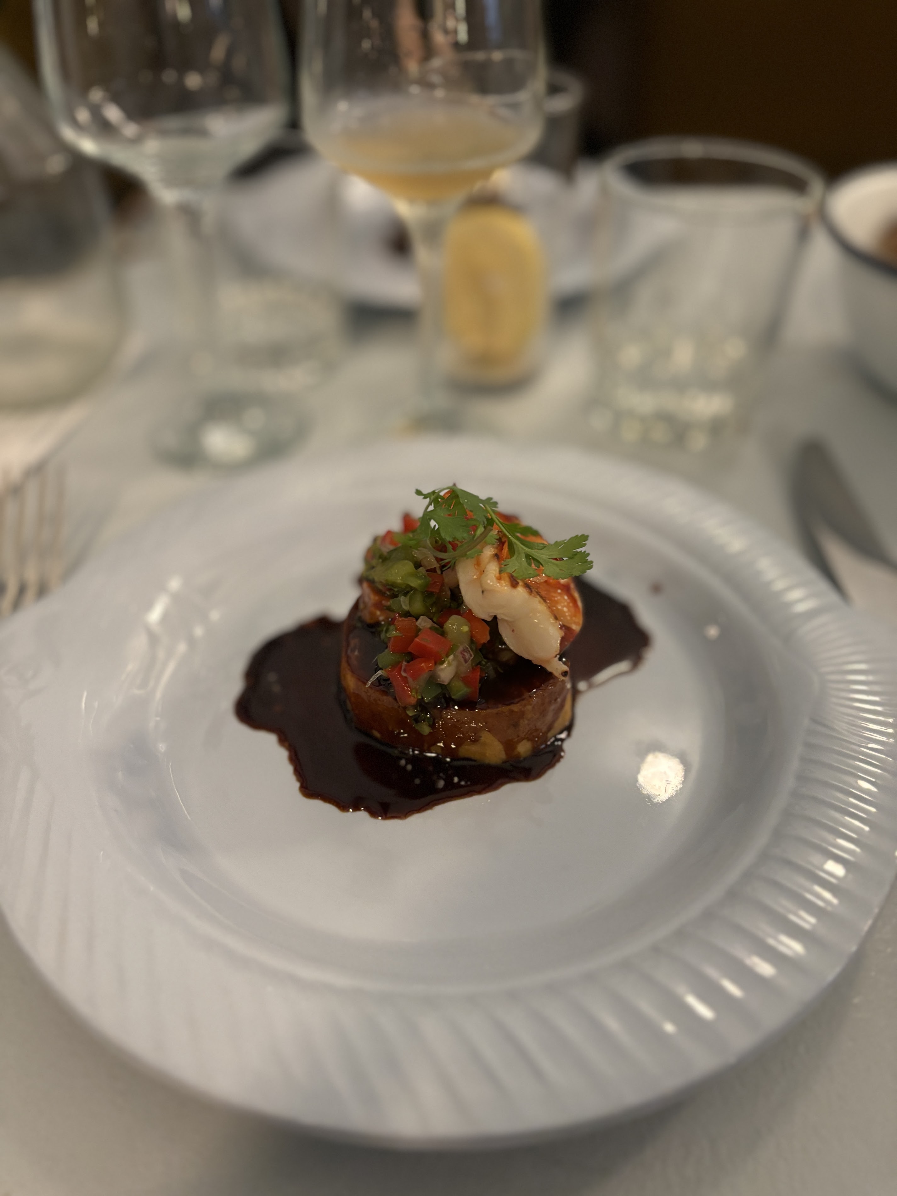 It's definitely an experience based on travels and memories. The menu is very good overall. Some plates are excellent and some could be worked on ( like the desert for instance that was not that amazing and has to get tastier ). The space is very set up and could become more lively like the downstairs venu . Disappointed in the end when music shuts down and you have nothing to do but leave - while not yet finished dinner.