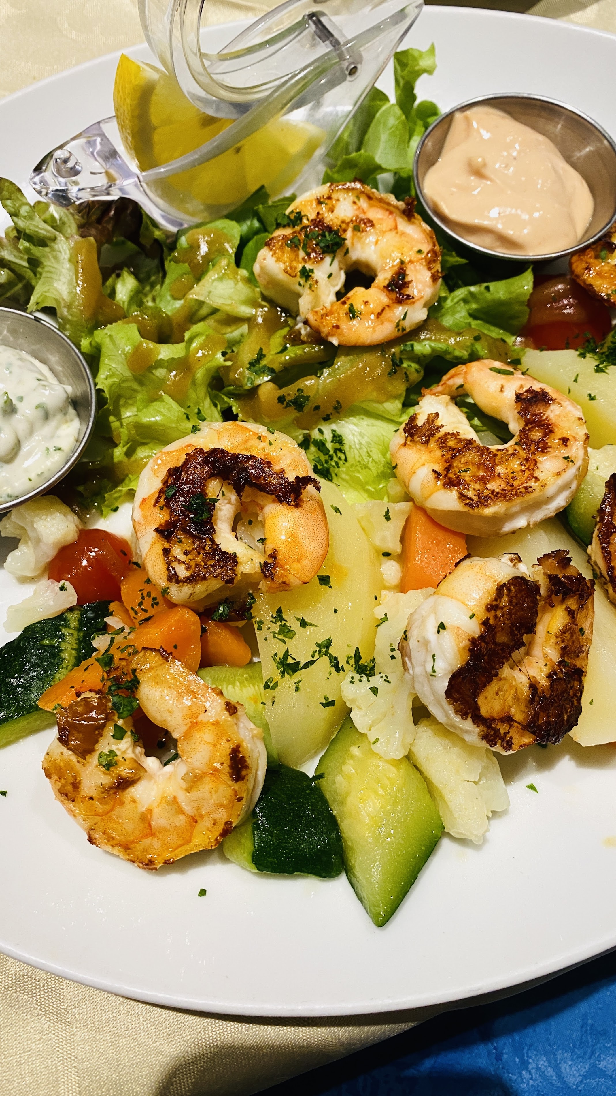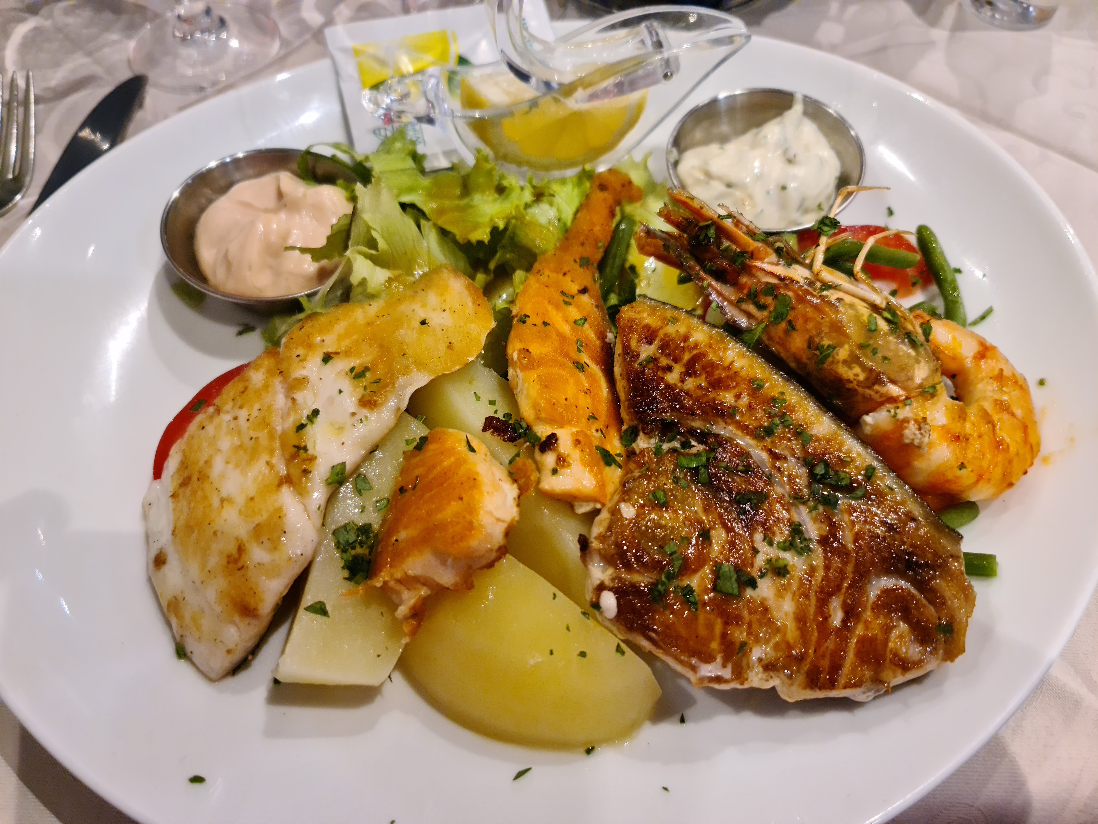 Had a bottle of wine. Ordered the goat cheese salad and escargots for starters. Both fine items. Escargots were great. For the main we've had the maigret de canard (duck breast) and the veal liver. Both with fries - which were really hot and crispy. The liver was nicely done. Great flavour, tender. The only fault in the food was entirely on us: we ordered the duck medium-well. Which it was. Should have ordered it medium. Besides that it was a wonderful piece of meat.