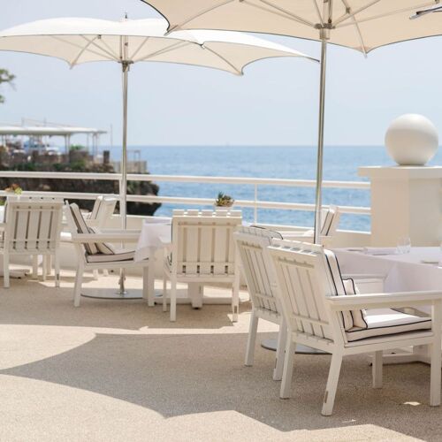 Established in the Monte Carlo Beach, a magnificent 1930s luxury hotel, revamped by designer India Mahdavi in a subtle Riviera vein, the culinary lineup is the work of executive chef Marcel Ravin (two stars at the Blue Bay Marcel Ravin). Talented, Italian-born chef Domenico D’Antonio sets the seafood score to music, calling upon first-class produce from the Mediterranean along the way: spider crab, white asparagus, yuzu, kiwi and fennel; John Dory, sorrel sabayon, ravioli stuffed with leeks and shellfish. Everything serves a purpose in this repertory which aims to highlight each ingredient courtesy of intelligent, high-impact seasonings. The quintessence of fine dining on a terrace facing the sea.