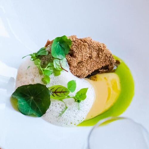 In the hushed, elegant decor of this Montreuil-sur-Mer institution, a young chef from Lille serves creative, eco-responsible cuisine (fermentation, decoction). He puts the emphasis firmly on plants and vegetables and showcases small-scale local producers. The yellow pollack, courgette from the market gardener, fish roe and elderflowers is a surprising, hearty dish with wonderful marriages of flavours.
