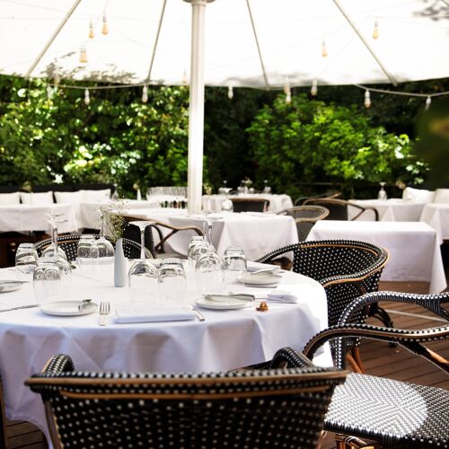 An oasis of greenery in the urban fabric of Paris's suburbs: as you walk through the wooded grounds of this 19C villa, you come across a vegetable garden, beehives and even a greenhouse for citrus fruit. In fine weather, take advantage of the terrace dotted with white parasols and decorated with fairy lights. The lively modern cuisine is served up by a pleasant young team.