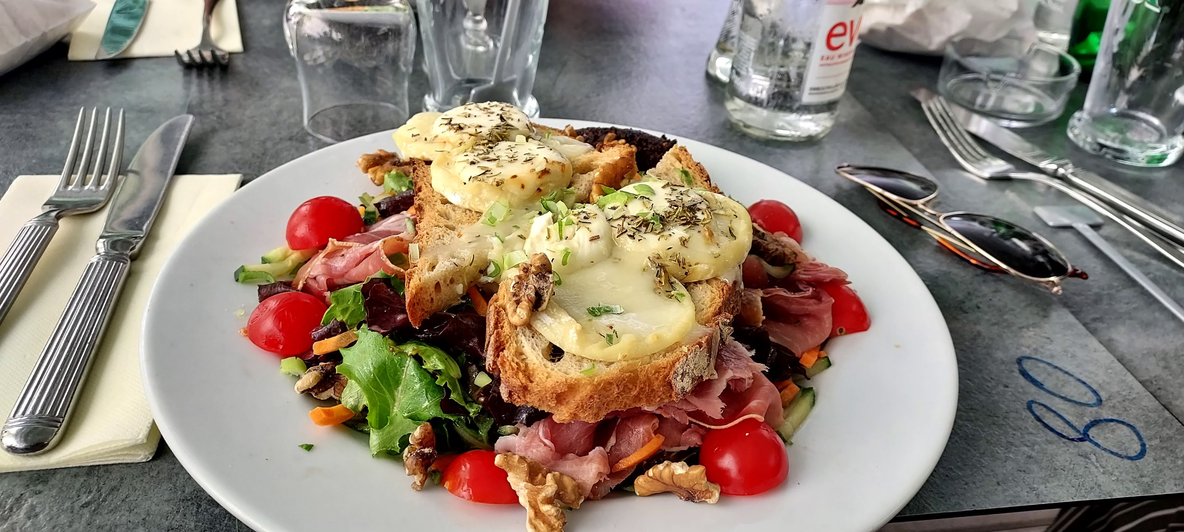 The restaurant had such great ambiance being situated in between the channel that runs through the village carrying water from the little waterfall! Not only that, you can look up and see the magnificent cliffs of Moustiers Sainte-Marie while dining.