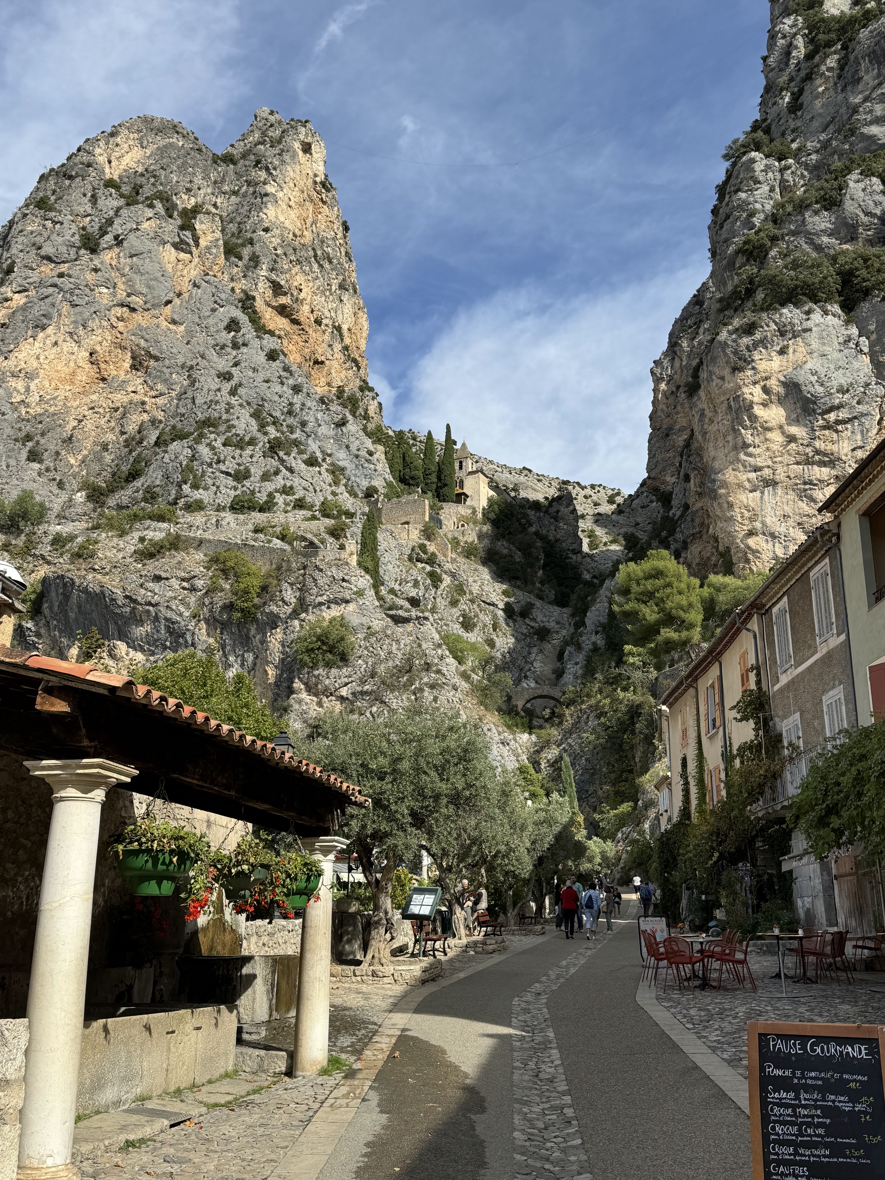 We only stopped by for a quick drink but I wish we could have spent more time here. The food looks good, too. I looked at the website and the young couple that runs it, Léo and Juliette, do an amazing job. The menu is very varied and the tea we drank was delicious. Léo also speaks English and is very attentive to the customers. On top of that, the music is fantastic (soul, funk and rhythm & blues) and they have an adorable puppy walking around. The view of the chapel on the mountain is amazing as well. What’s not to like? Have a meal - or at least a drink here when you visit the fabulous Moustiers-Sainte-Marie!