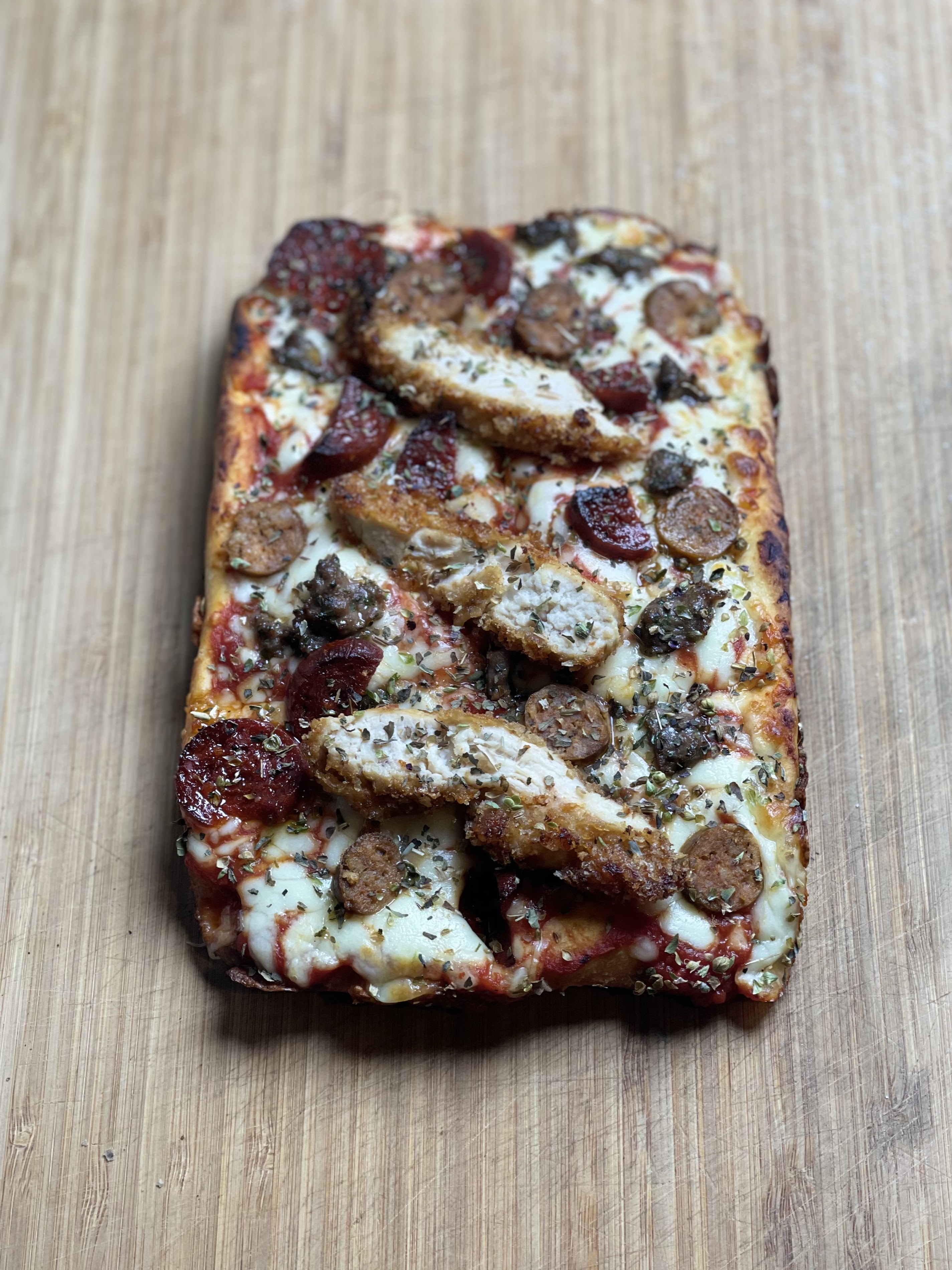 Top team very responsive BUT the food is nothing more for “American pizza” there is nothing American pizza pizza taste nothing more the fries too seasoned not crispy little favorite for their tenders price levels it is not excessive