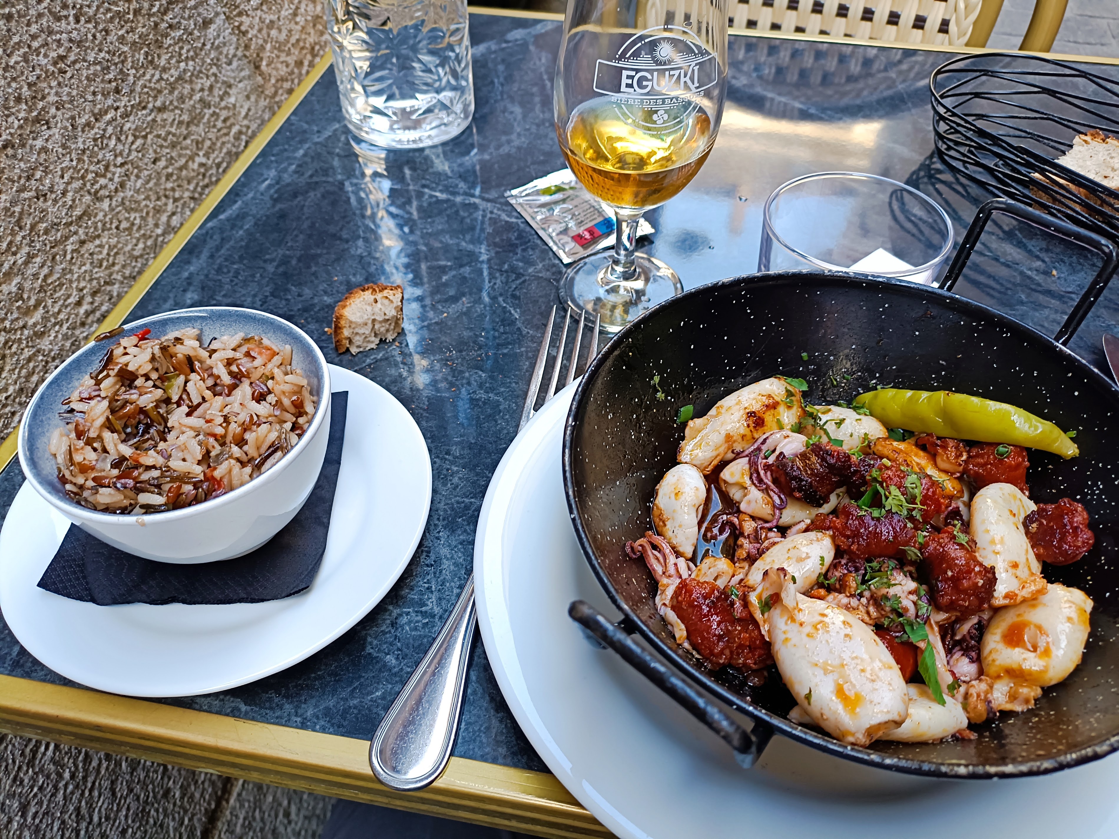 What a beautiful meal! A lovely spot in the centre of Nantes, with outdoor and indoor seating. Beautifully decorated with Moorish tiles etc. Staff incredibly accommodating and knowledgeable. We chose a selection of dishes from the a la carte menu, and from their specials board, including razor clams, stuffed, piquillo peppers, squid with chorizo and the chef’s recommendation dish. I can’t recommend this enough!