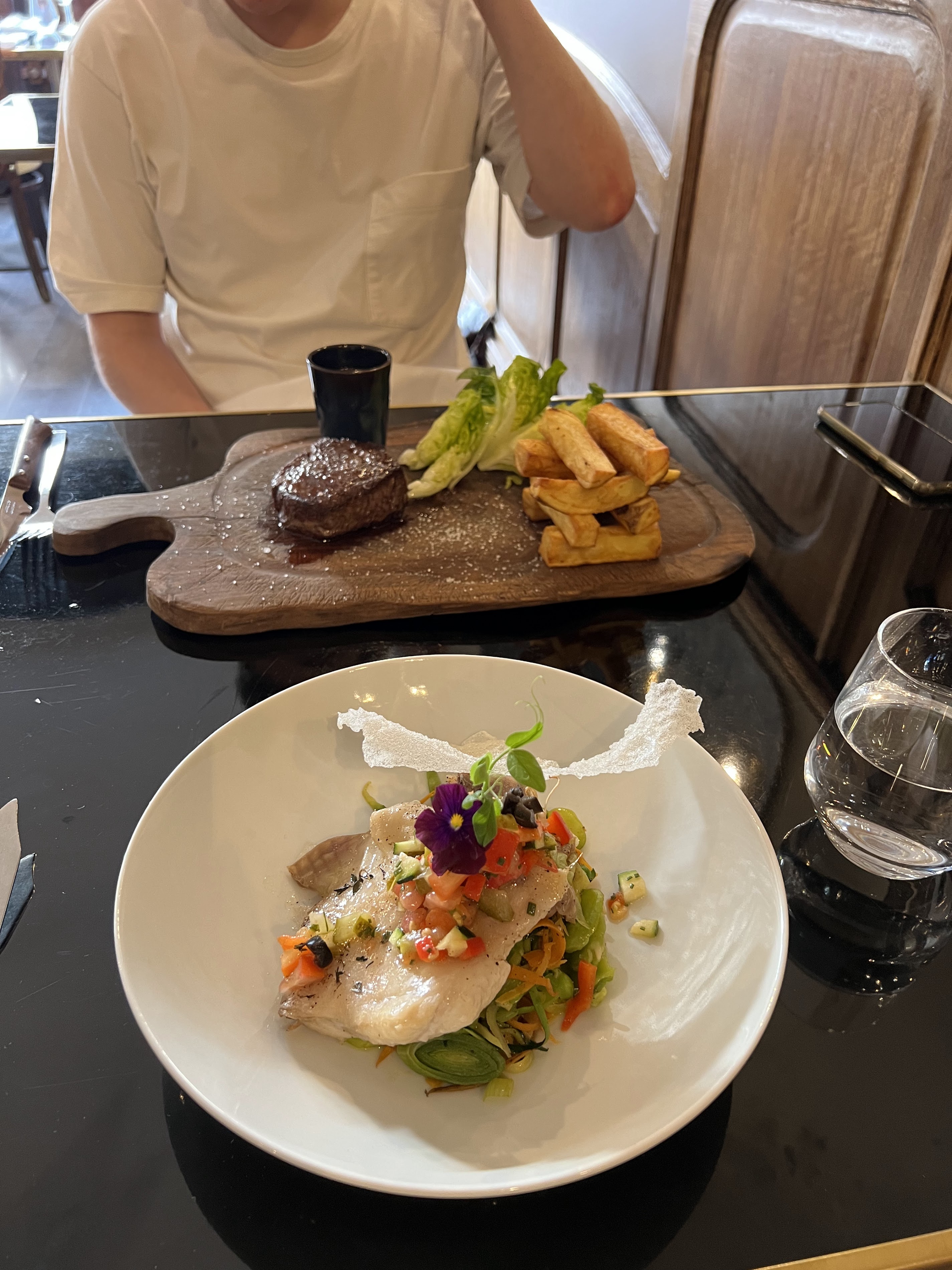 The beefsteak was very juicy! The turbot fish was perfectly pan fired that the skin is chewy and flavorful. The mix veggie sauté is divine ?