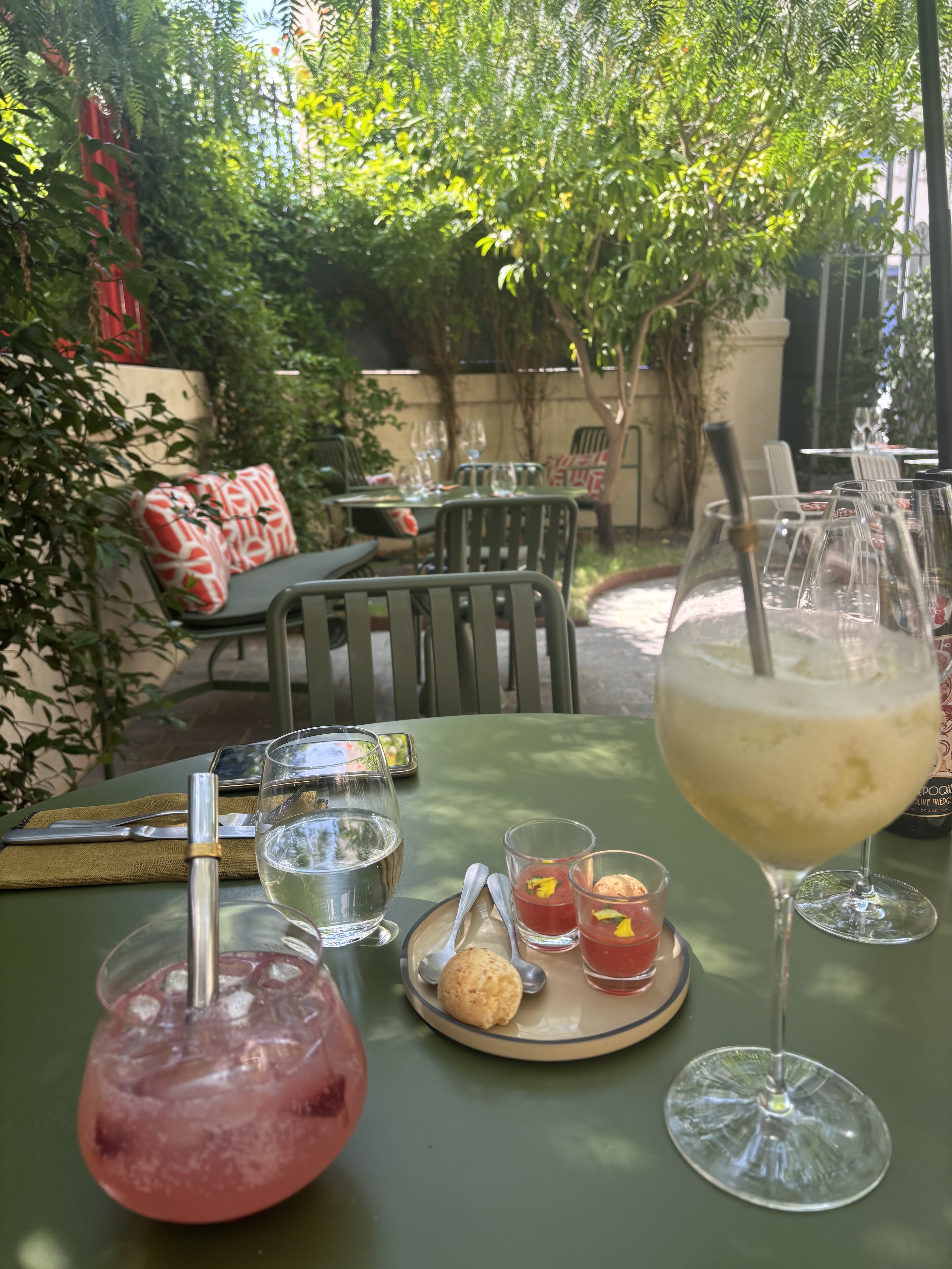 Delicious food in an amazing restaurant space. The hotel entrance is on one side and the restaurant is through a lovely courtyard where many were having g&t as we walked into dinner. The empanadas are a must have with a selection of three sauces to choose from that also was great with the steak. The grilled veggies side and potatoes were yummy. As was the wine selection. Service was excellent and friendly. Appreciated the English menu for those who are no French readers. Overall a great meal to be had here at the restaurant Le mosaique.