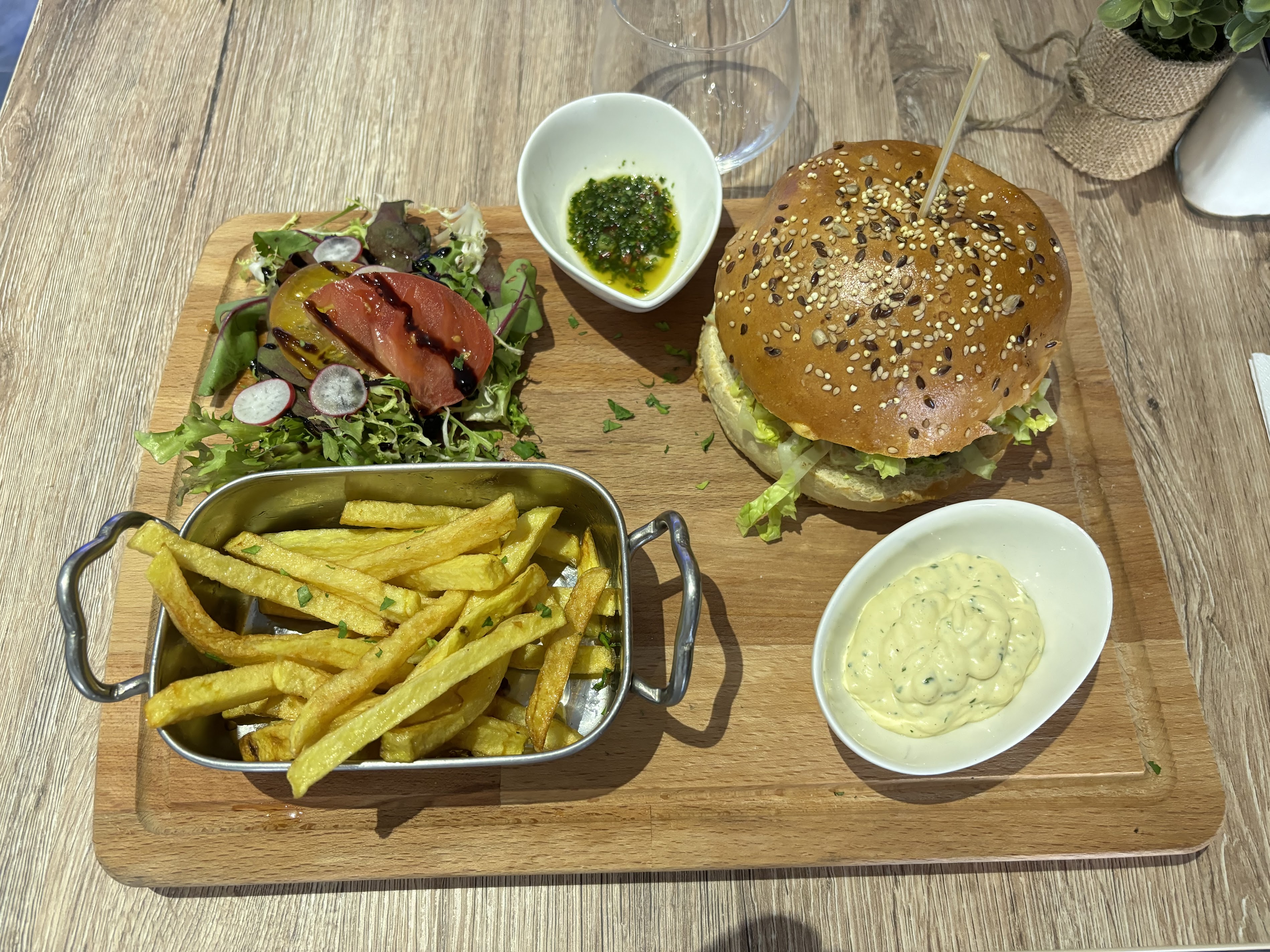 We come on “vacation” to Nice and we found this place that apparently opened recently with a very cozy atmosphere. Everything was very delicious (the recommended hamburger and skewers) and the manager was very nice. There are 3 of us and everything cost us €40 (although we didn't order a drink, just the water that they serve you as soon as you arrive). Recommended 100%.