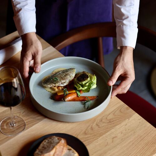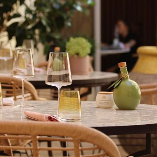 A separate entrance from the hotel's leads to this bistro boasting vaulted ceilings and carmine hues – the space is elegant and cosy, in keeping with the fine dining cuisine of chef Georgiana Viou, who also devised Gigi's menu. All the dishes come from the same kitchen as Rouge, but of course are much simpler, comprising sun-drenched Mediterranean cuisine. Crépinettes of Alpilles lamb, roasted peppers, garlic and herb cream; mackerel from Le Grau-du-Roi, Catalan escabeche-inspired stuffing and broccoli. At the back, a table d'hôte welcomes small groups and even guests eating solo.