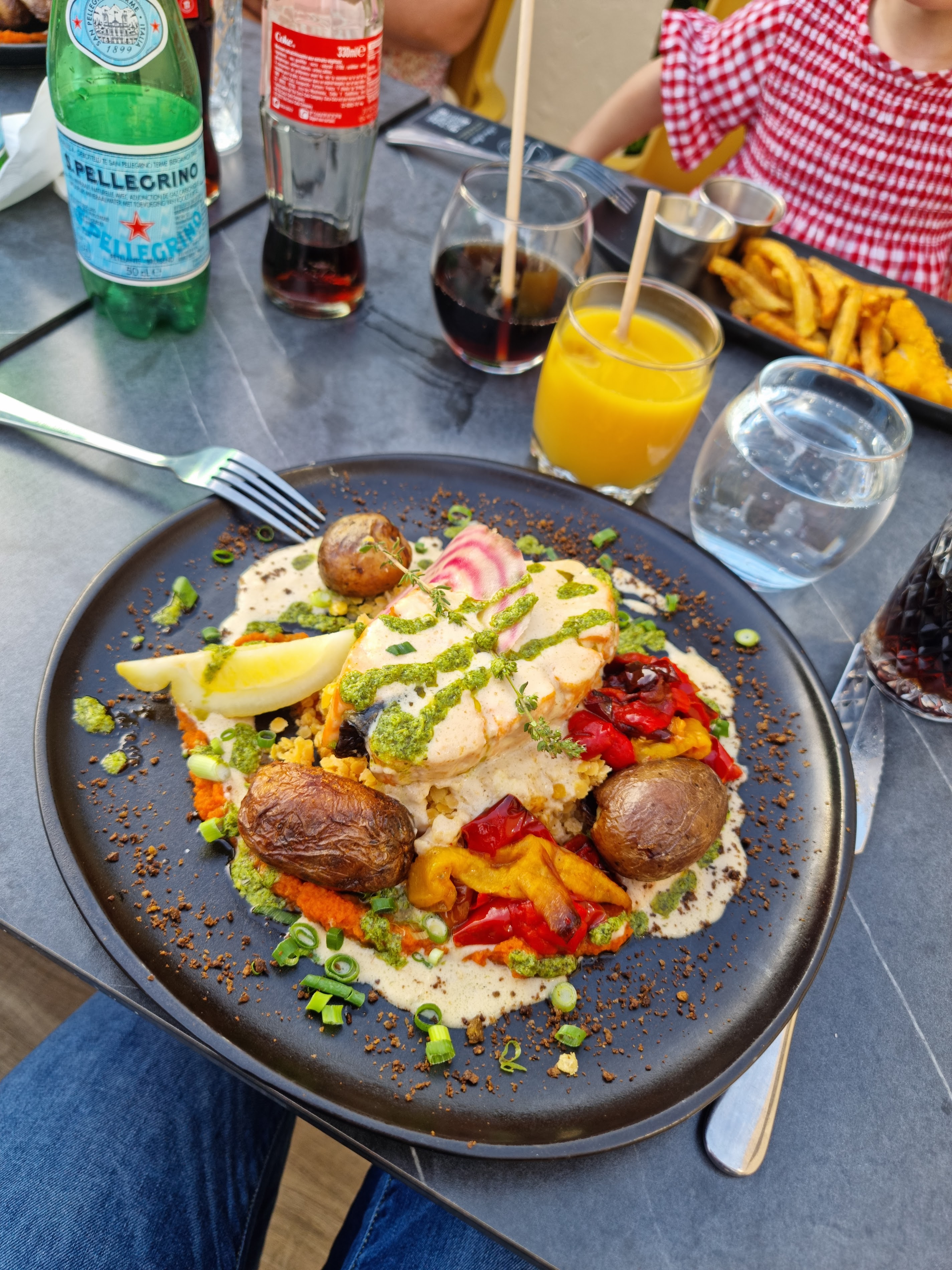 We loved this oasis of food cooked with such love and attention. We had the seabass with vegetables and a side of potatoes gratin followed by a chocolate fondue and strawberry slice. It was amazingly tasty. Around 40euro a head.