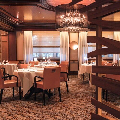 On the outskirts of the town, this imposing Alsatian hotel/restaurant has been in the family since 1954. The elegant dining room features honey-coloured panelling, a coffered ceiling and a crystal chandelier. Dishes are up-to-date and carefully prepared.