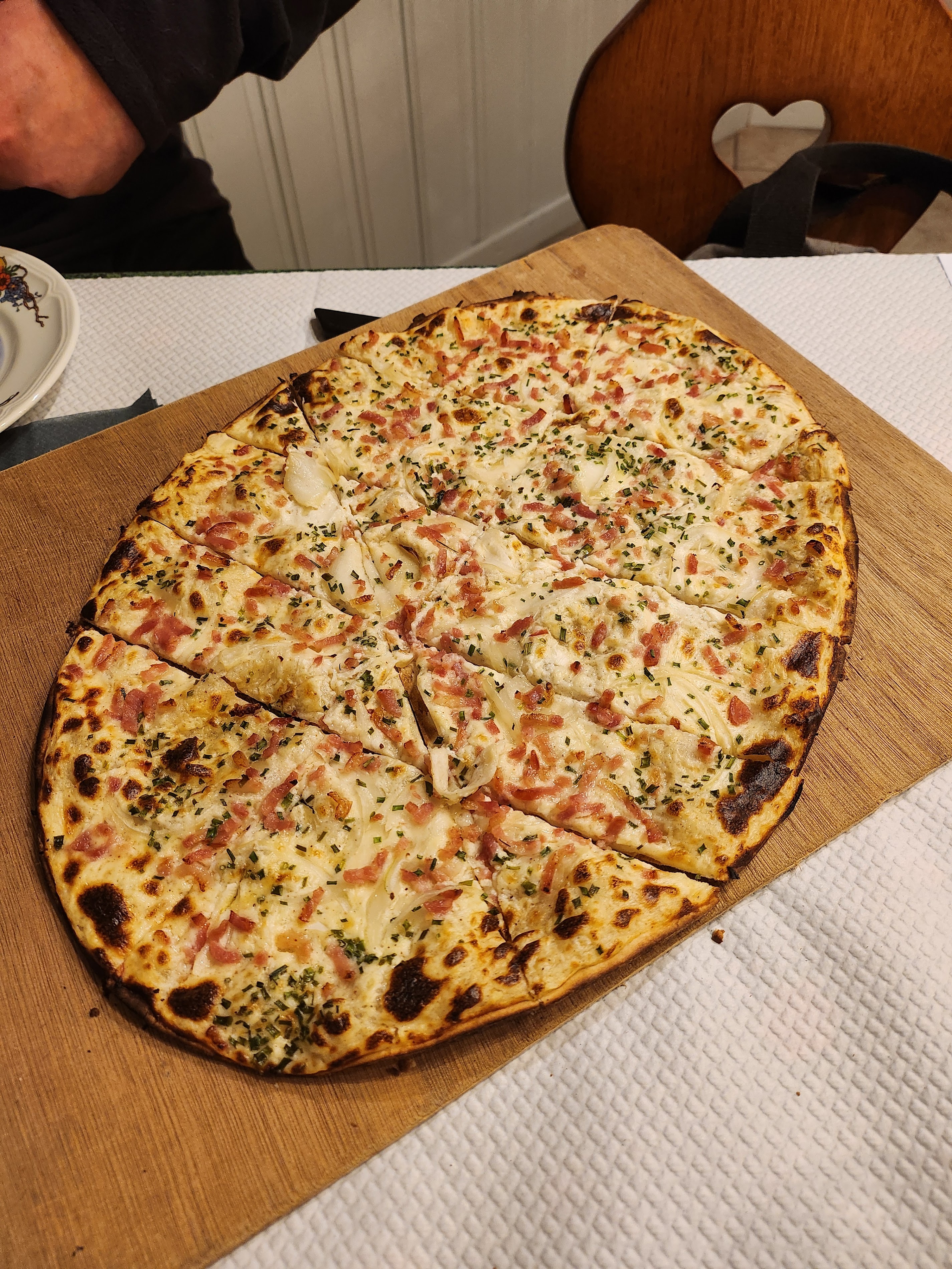 We went to eat a tarte flambée in this restaurant. On the pie not much filling and certainly not cooked over a wood fire. It was bland and not tasty. On the other hand, the waitress served us quickly and efficiently. Disappointed, we won't go back.