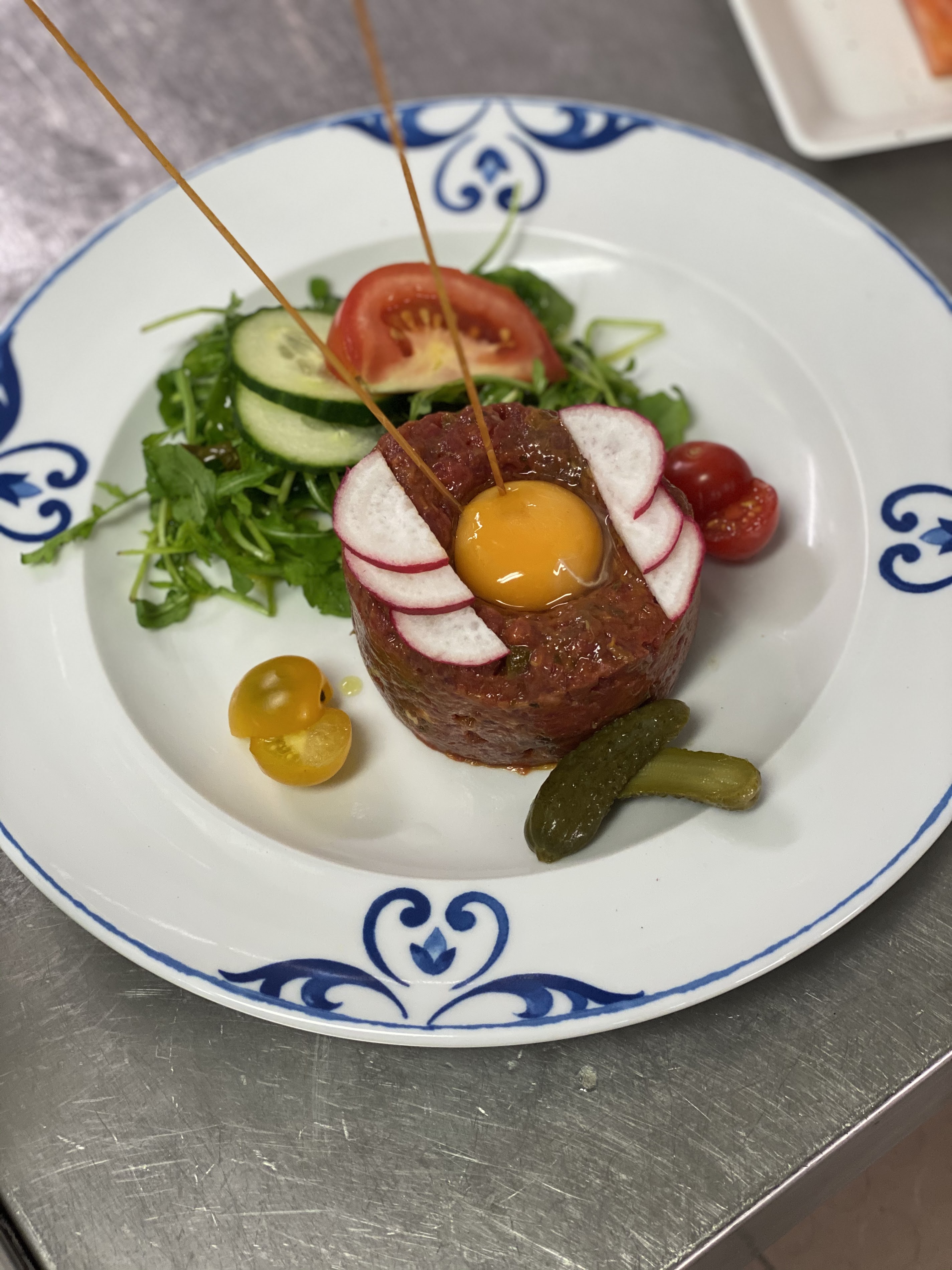 We were very excited to try out traditional Alsace food but were very disappointed after waiting for almost an hour for our food, this burnt schnitzel came out. I had to leave a big part out and was not even asked if I wanted something else.