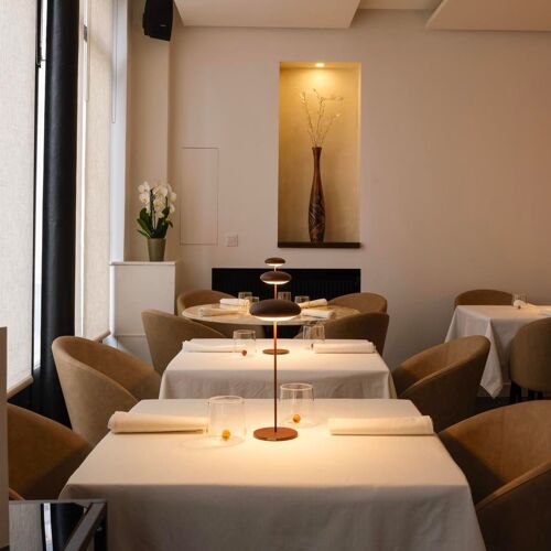 Unlike many of the other restaurants in the east of Paris, this one has gone for classic elegance: a refined decor, tablecloths, stylish service. Perhaps this is the mark of the good taste of Italian couple Cecilia Spurio and Eugenio Anfuso, who are familiar with Michelin-starred restaurants. Prepared with small pieces of citrus fruit and cashew nuts, the smoked Galician veal tartare is served in a sea urchin shell, topped with a quenelle of sea urchin ice cream. For his red mullet à la bourguignonne, the chef arranges the fish on shredded beef and cabbage leaves, the whole of which is then doused with a superb sauce. This is a modern iteration of the French repertoire, punctuated by a few Italian touches or other influences from further afield, executed with precision and a clear penchant for acidic notes.