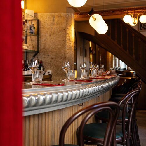 A fabulous bistro repertoire of tried-and-true classics: think herring fillets, potatoes in oil; œufs mimosa (devilled eggs); scallops roasted in butter; veal blanquette; profiteroles, vanilla ice cream and chocolate gianduja. The menu is devised by David Bottreau in the spirit of Christian Constant, his long-time associate and mentor. Generous, flavoursome cuisine in a typical Parisian bistro atmosphere, where diners tuck in cheek to jowl at small tables laid out next to each other.