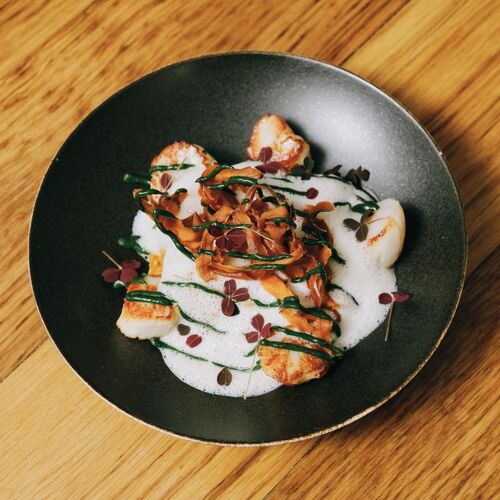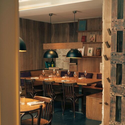 Pressé de bœuf (beef terrine), kale mayonnaise; roast mallard, glazed mini beetroots, confit legs; peanut chocolate, chocolate quenelle, ice cream and peanut praline: chef Guillaume Campion, like the pro he his, having worked in some of the best restaurants in the world, is embracing his role. With a sure hand, he delights diners with his lively bistro-inspired cuisine. In addition to the tables along the banquette, there are also larger tables, ideal for feasting with friends.