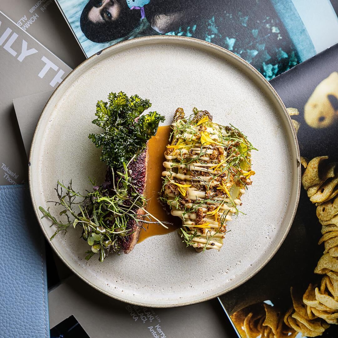 This restaurant is tucked away at the back of a fashion and design concept store showcasing young designers. Behind the wooden door, light flows through the glass roof into a space with an open kitchen and a bare concrete floor. A veritable cultural hub, the basement includes a small exhibition room, a cocktail bar and a table d'hôte. In the kitchen, chef Victor Blanchet (who was a contestant on French TV's Top Chef in 2023 and has also worked at L'Arpège and Neso) is inspired by the Mediterranean and the Basque Country – serving dishes that are colourful, light and well composed, such as sea bass tataki flambéed with pastis, beetroot mousseline and preserved lemon. Online bookings only.