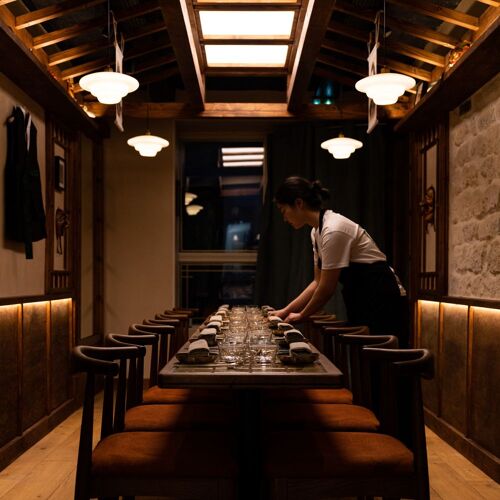 Chef Thibault Sombadier opened this Korean eatery, the decor of which nods to the traditional hanoks (houses) of the Land of the Morning Calm. The menu is extremely well devised and meticulously executed by a Korean team: beef broth with tofu, shiitake and garlic crisps; miso-glazed monkfish; toasted buckwheat cream and soya caramel. Barbecued over charcoal, the matured meats and marinated fish are served alongside the traditional banchan (small side dishes of fermented or marinated vegetables) and accompanied by well-seasoned sauces and crunchy salad leaves for diners to prepare their own ssam (wrap). There is a small and original wine list, complemented by a few Korean rice spirits.