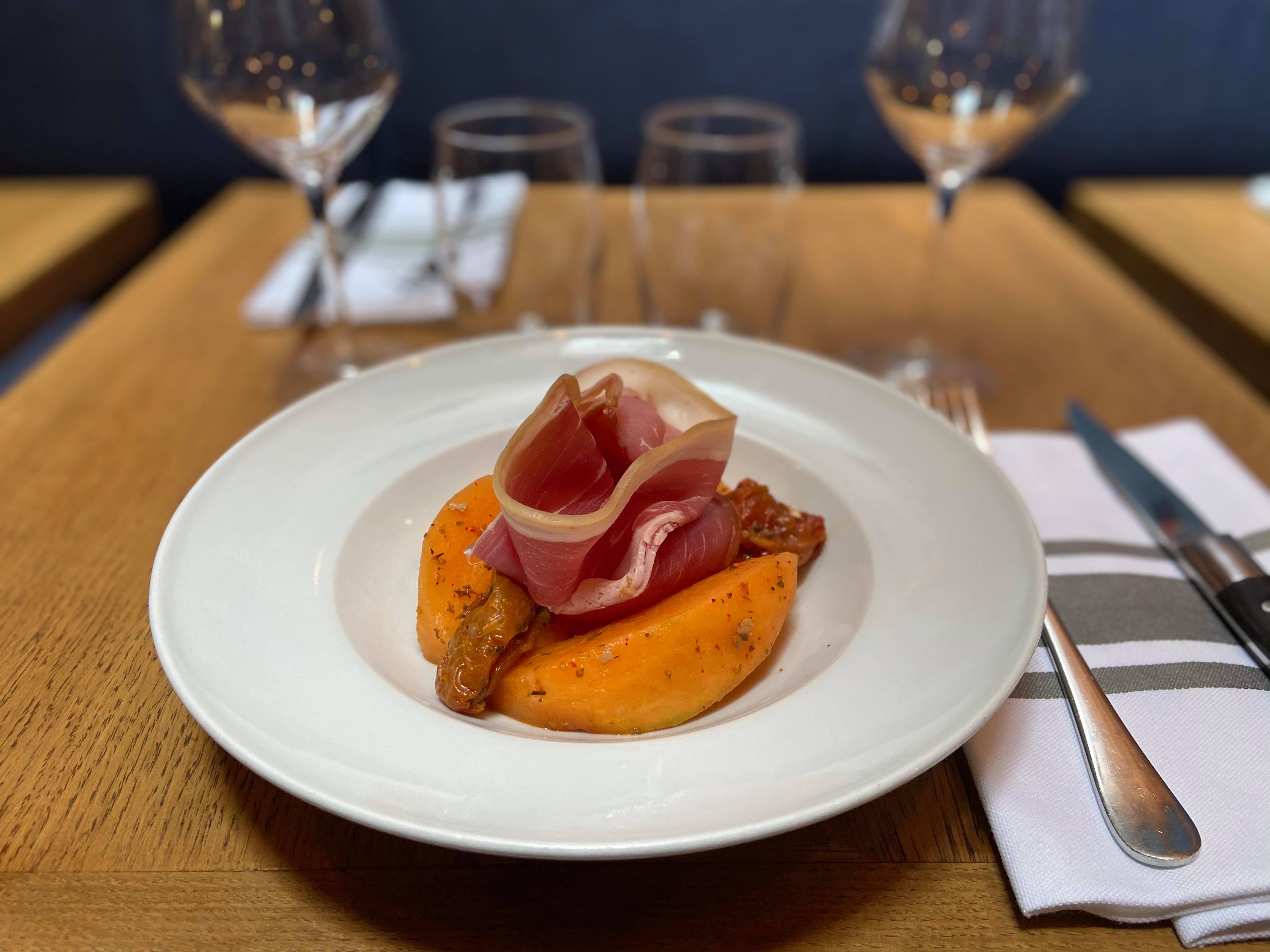 We had veg Ravioli to start - lovely tomato sauce! Turbot and Italian beans for main - both fighting to be the best on my plate, and a peach clafoutis for dessert - hot but when I finally got it in my mouth, was amazing.