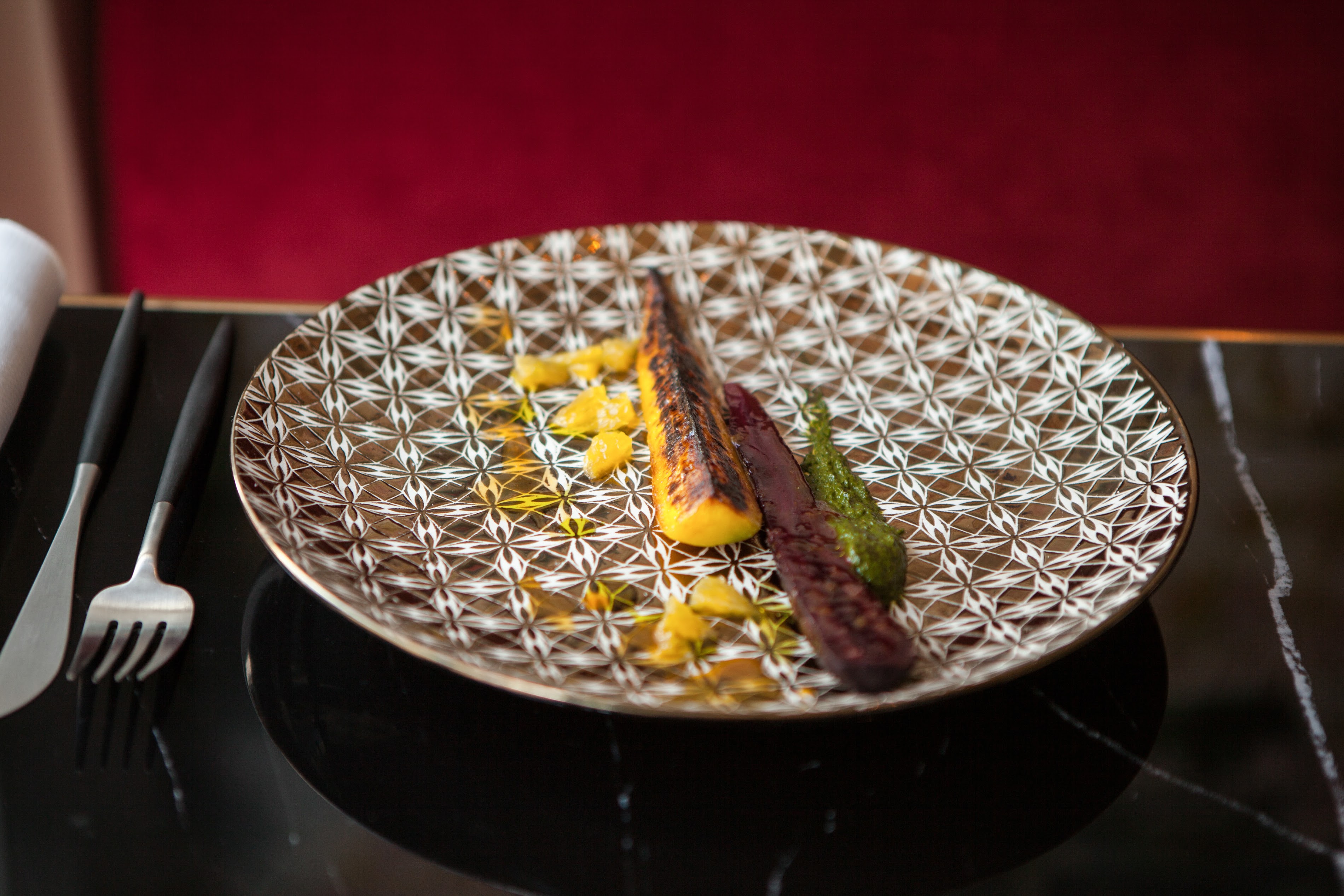 How do you combine a chef's passion for volcanoes and fire with a sommelier's passion for his craft? This restaurant unites the talents of two hospitality professionals who cut their teeth in renowned establishments. As for the food: the chef serves up his particularly tempting brand of cuisine based on flames and hot coals. French produce is meticulously combined with ingredients that are full of character – often spices – brought back by the chef from his many travels. A case in point: poultry from the Perche area grilled over binchotan, early courgettes and calçots (green onions), poultry jus with juniper. A lively, colourful feast, enhanced by a wide-ranging wine list.