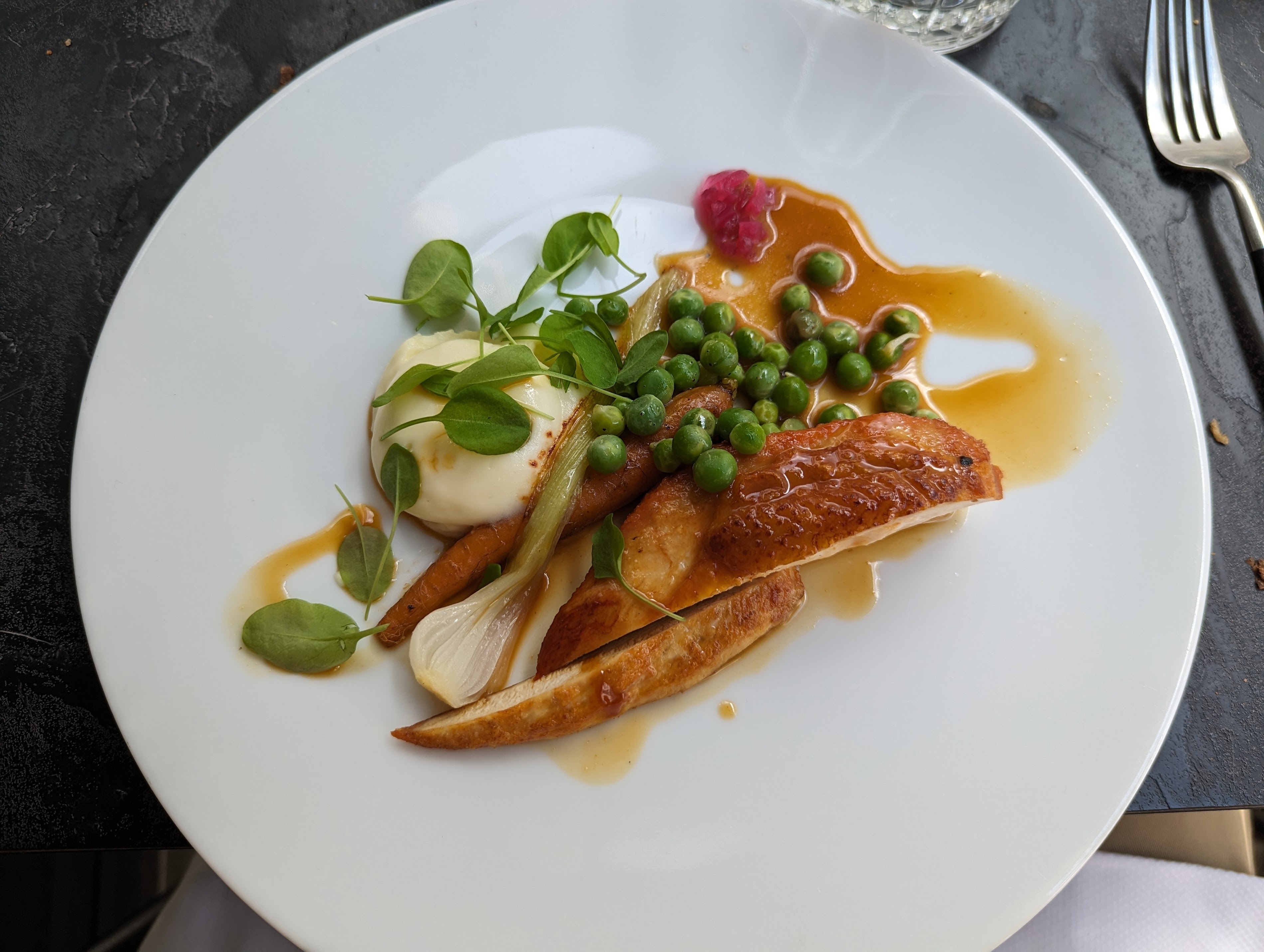 Sautéed Jerusalem Artichoke was surrounded by a powerful peanut sauce and foamed potato. It was a fascinating and many layered dish. Black Mullet was tempered with tangerine and sautéed chicken breast was accompanied by a separate dish of chicken ravioli in broth scooped up with a spoon. This was a lot of food, finalized with a scrumptious lemon tart for dessert. Service was kind and very patient with me. I did think the wine prices were a bit high, and thus we stuck to Sardanac’s glass selection.